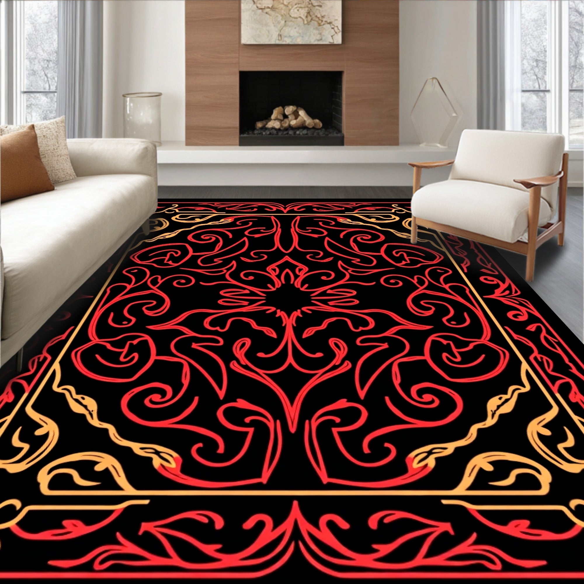 Burst Swirl with Ornate Floral Motifs (Red)