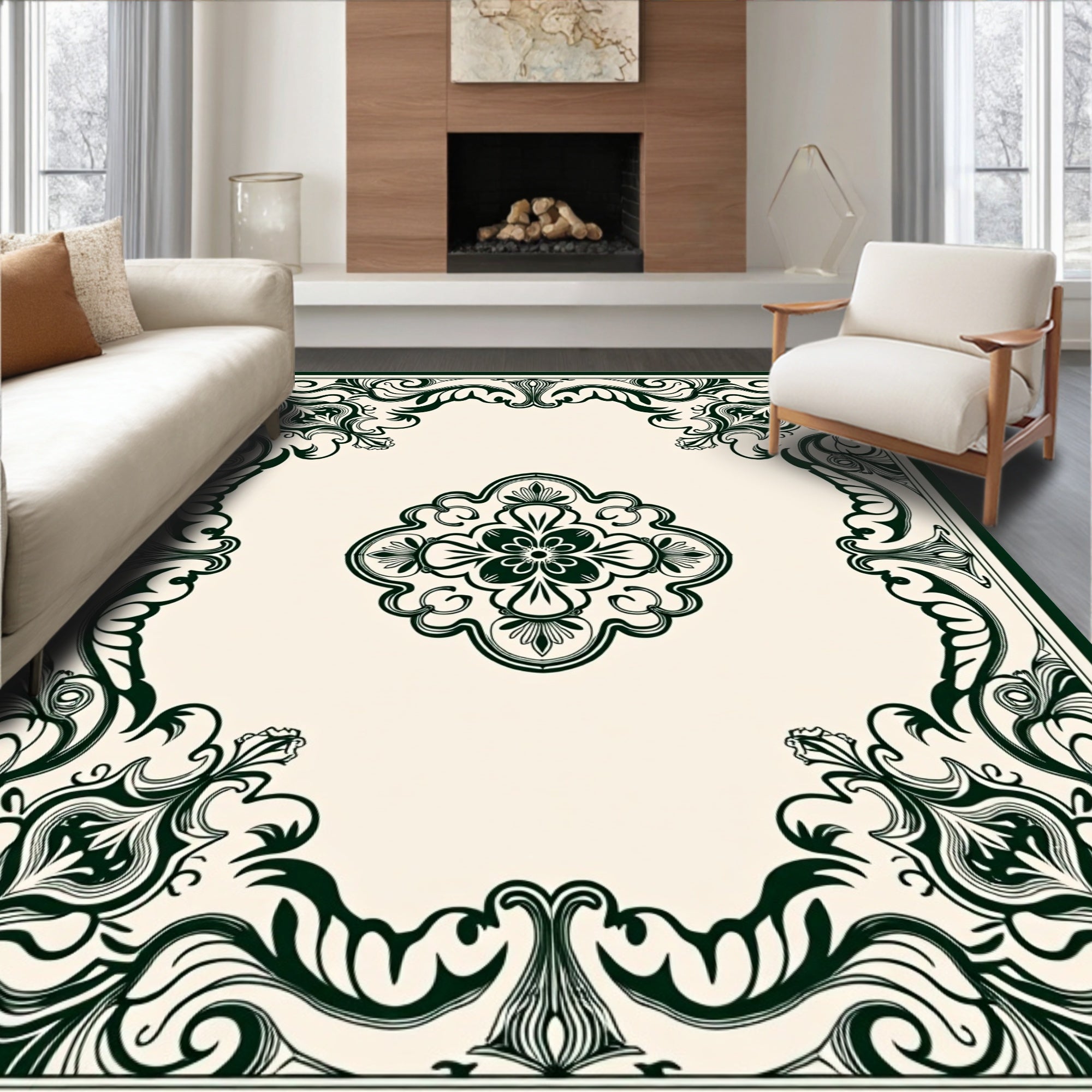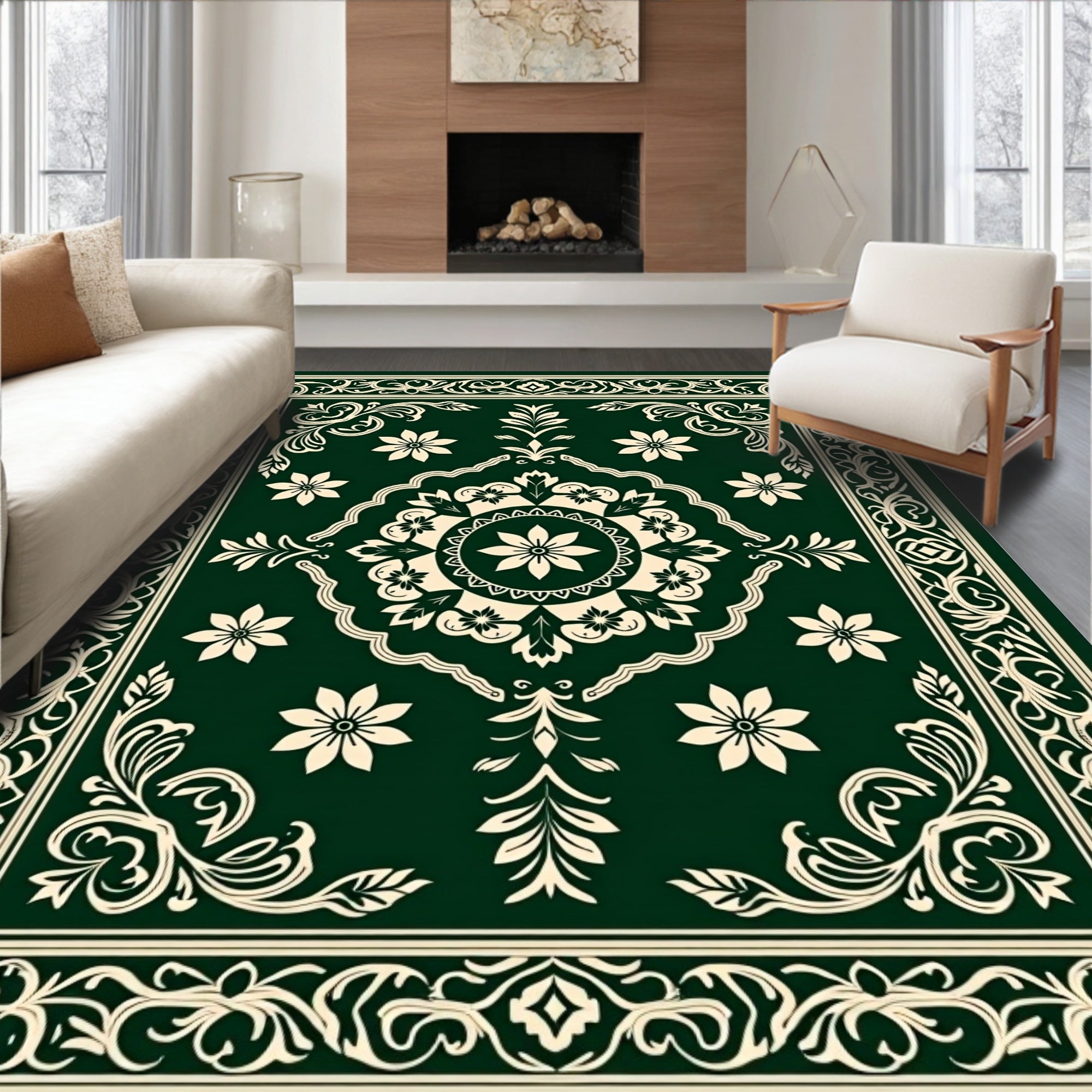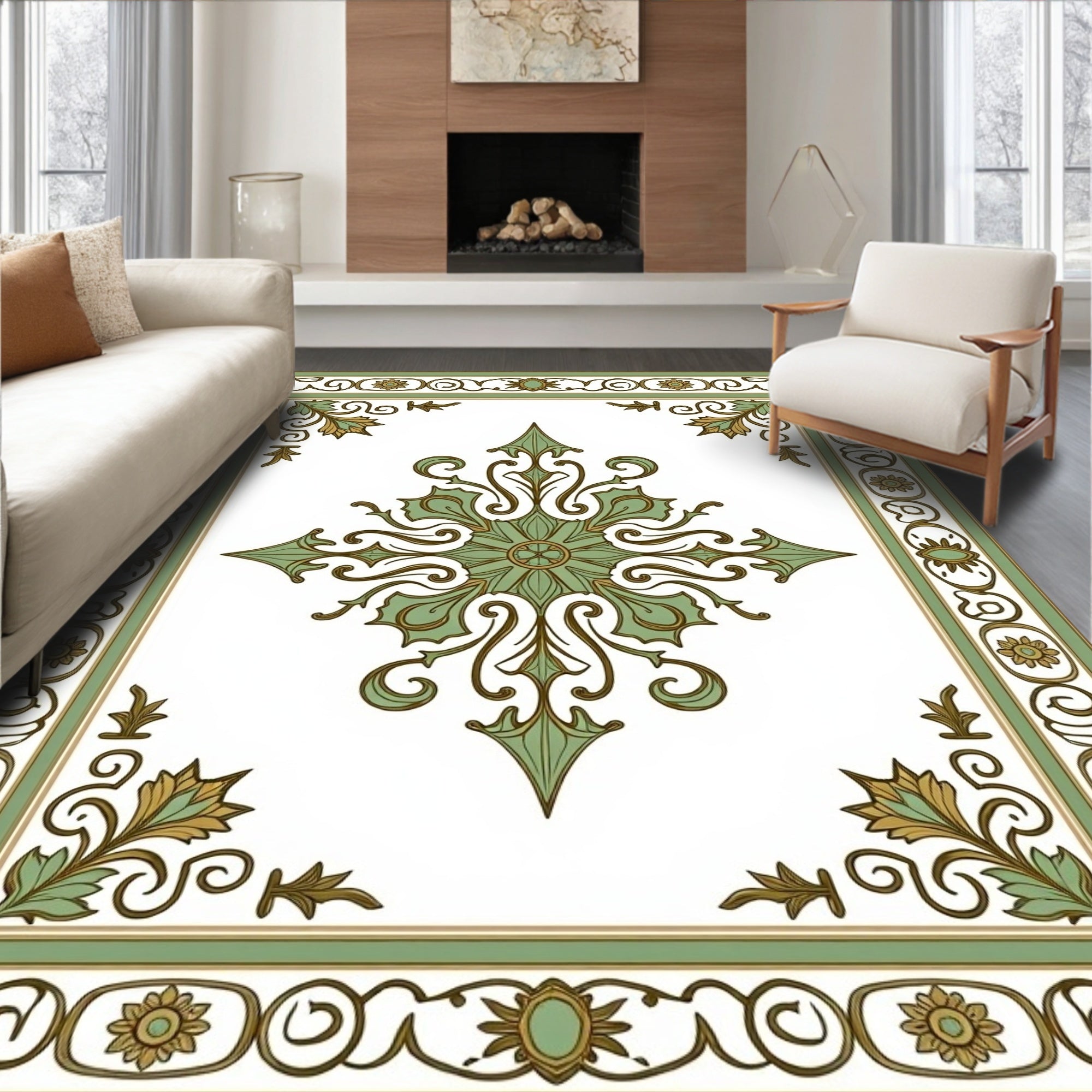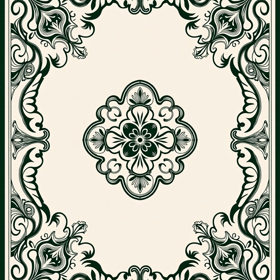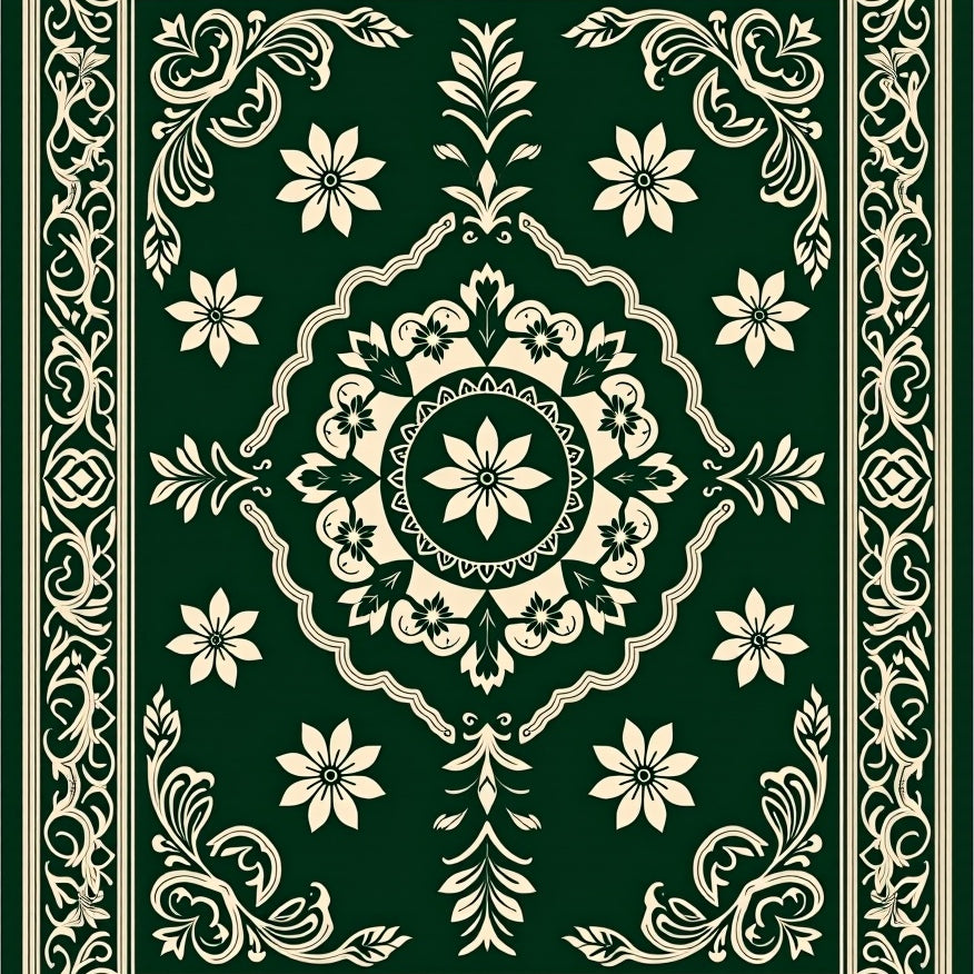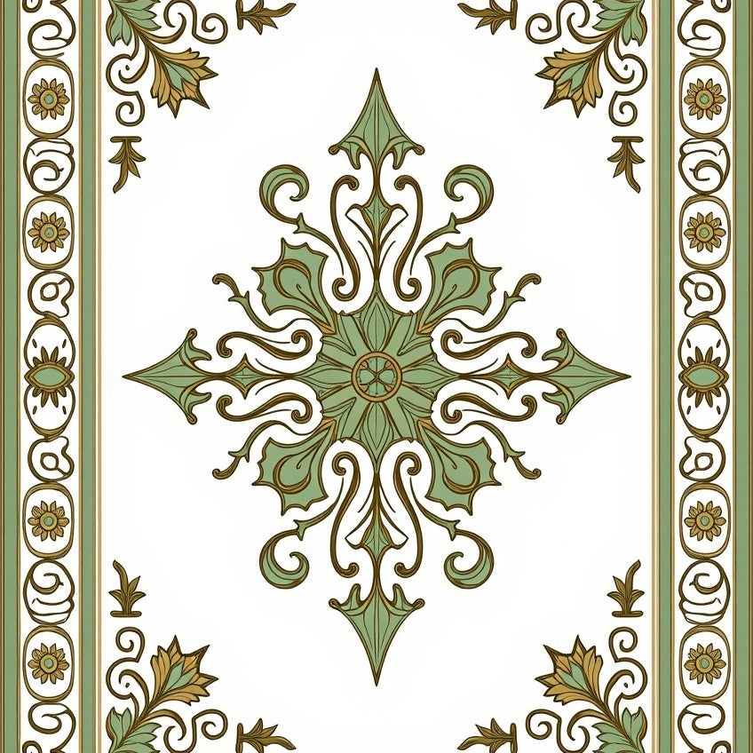 Vintage Medallion Revival with Ornate Scrollwork and Floral Accents(Green)