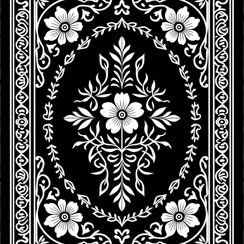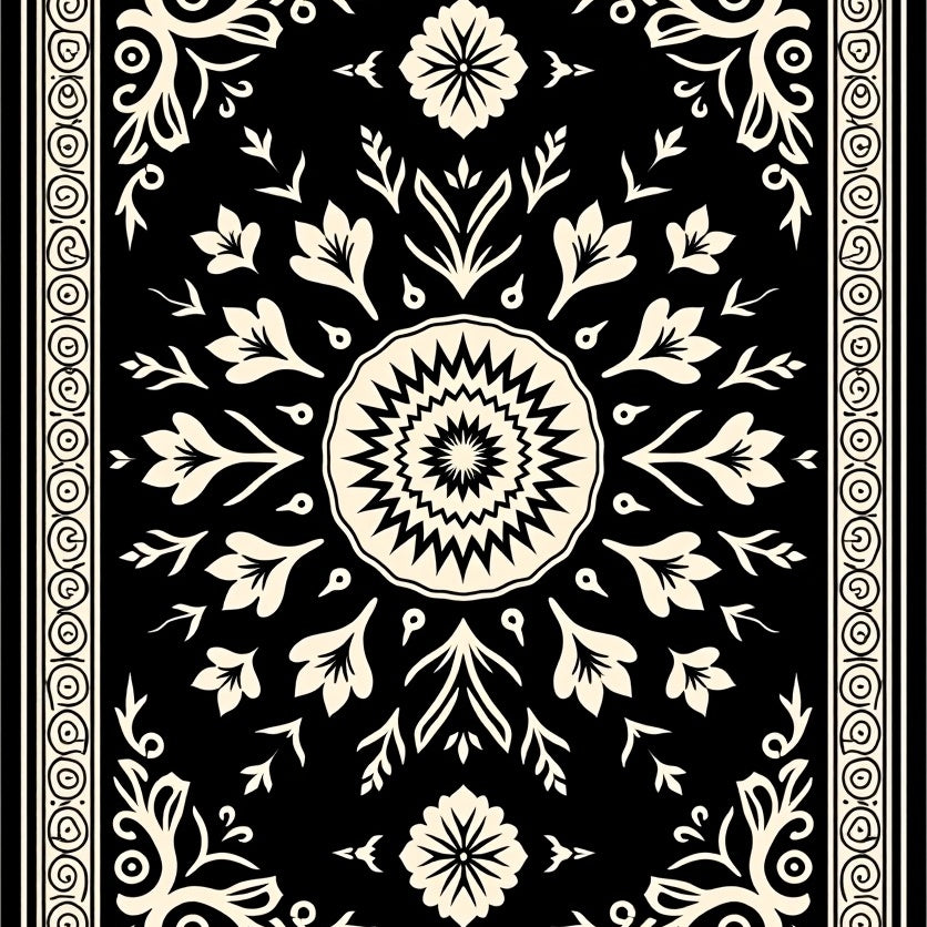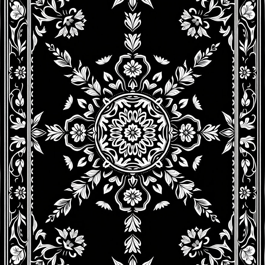 Elegant Floral Medallion with Intricate Boho Accents and Motifs(Black)