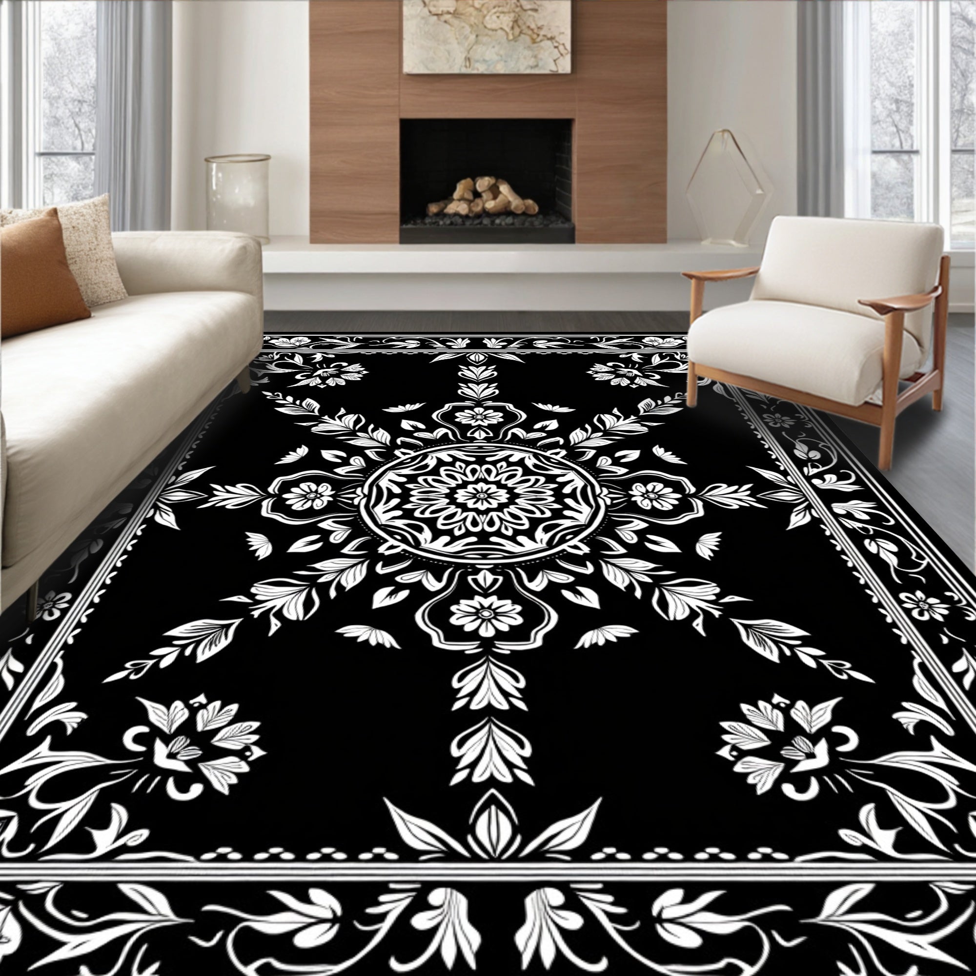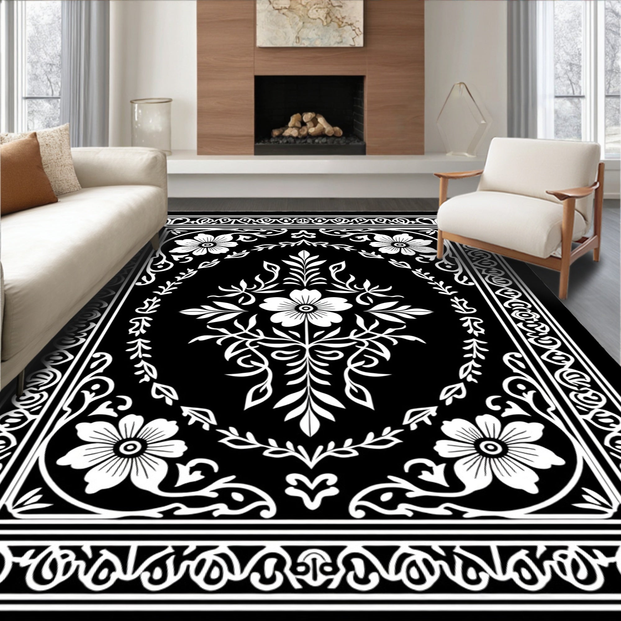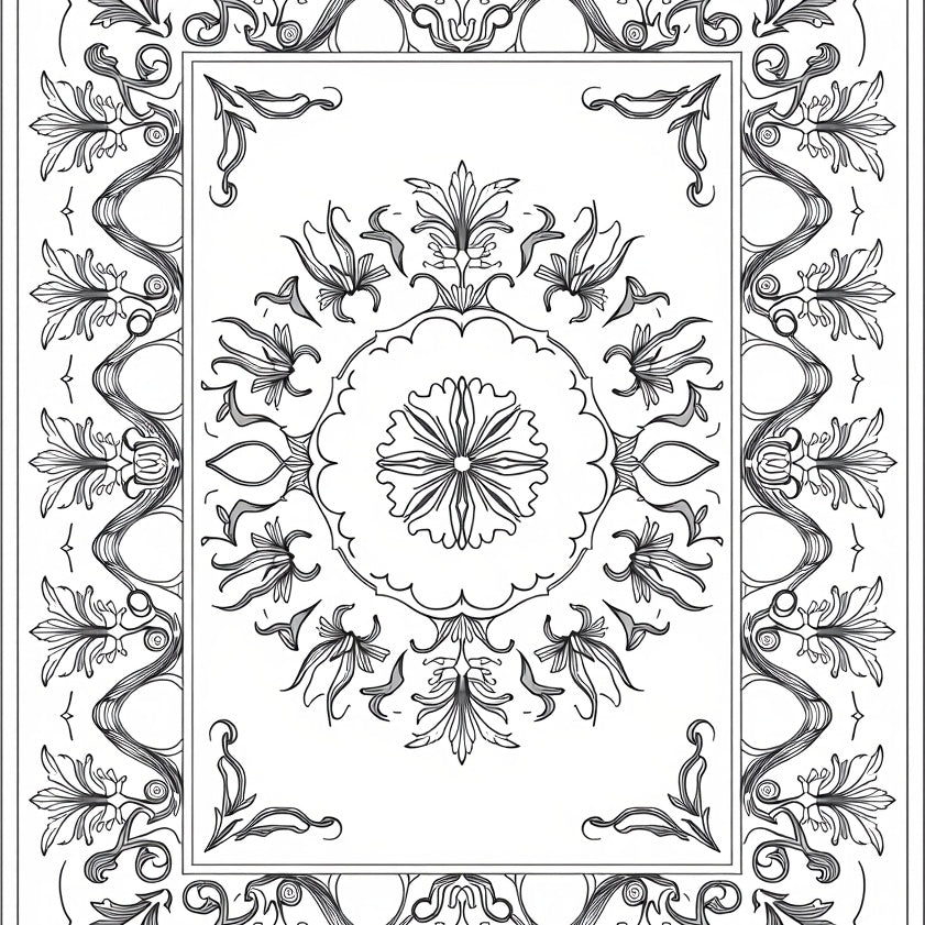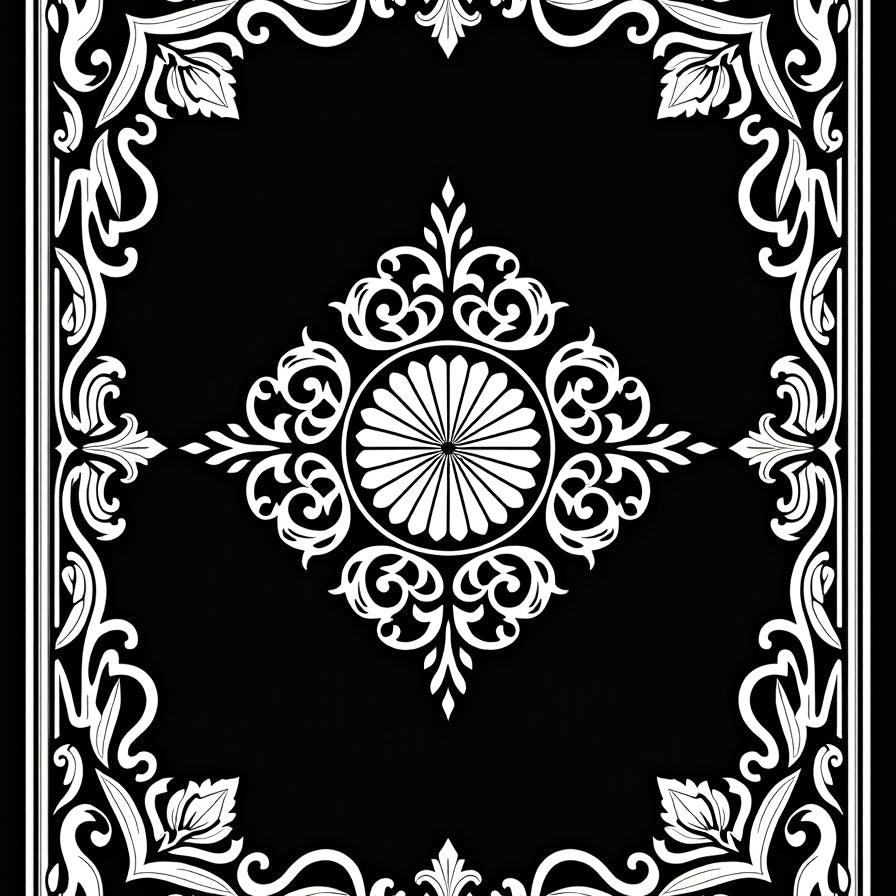 Vintage Floral Medallion Botanical Artistic Decorative Elegant(Black)