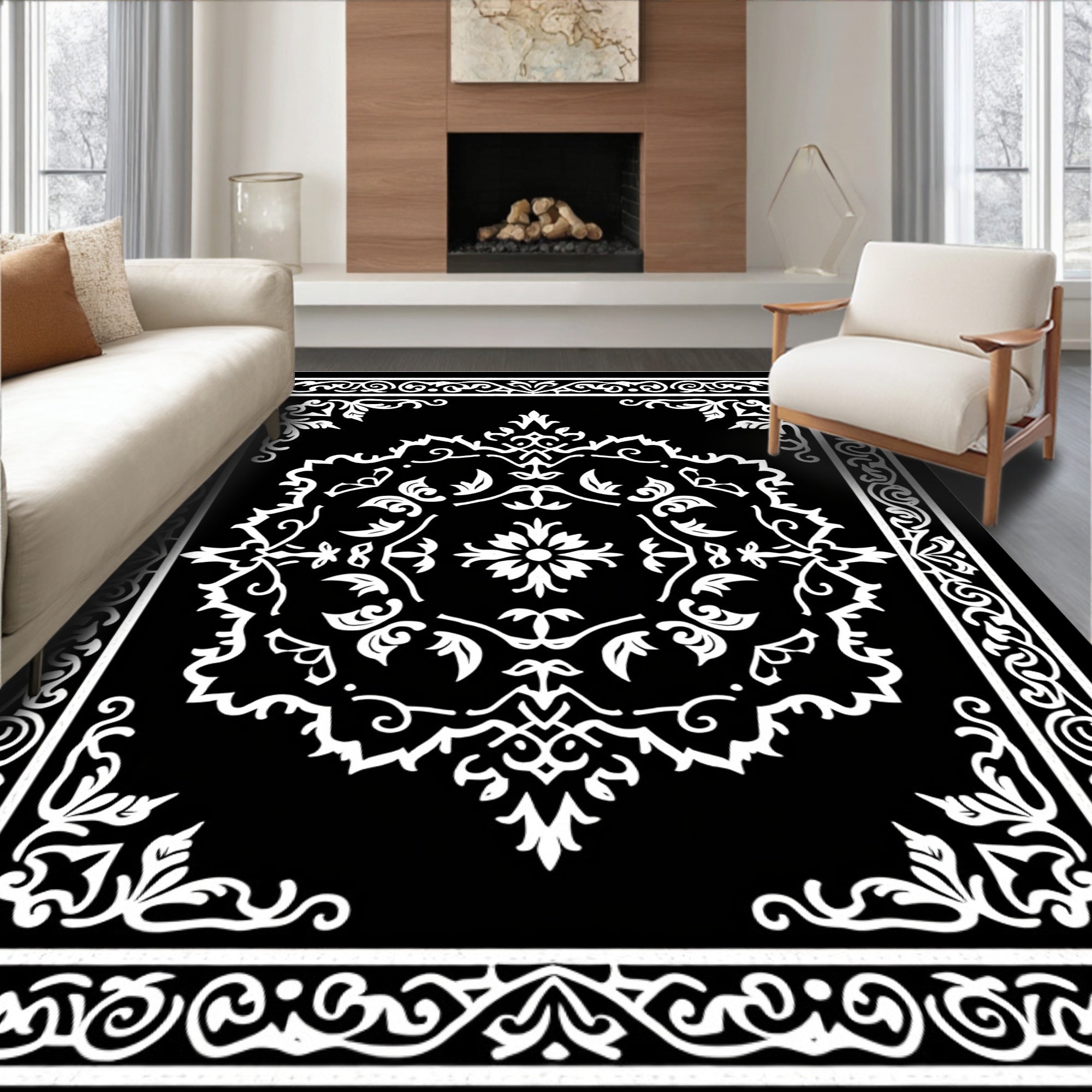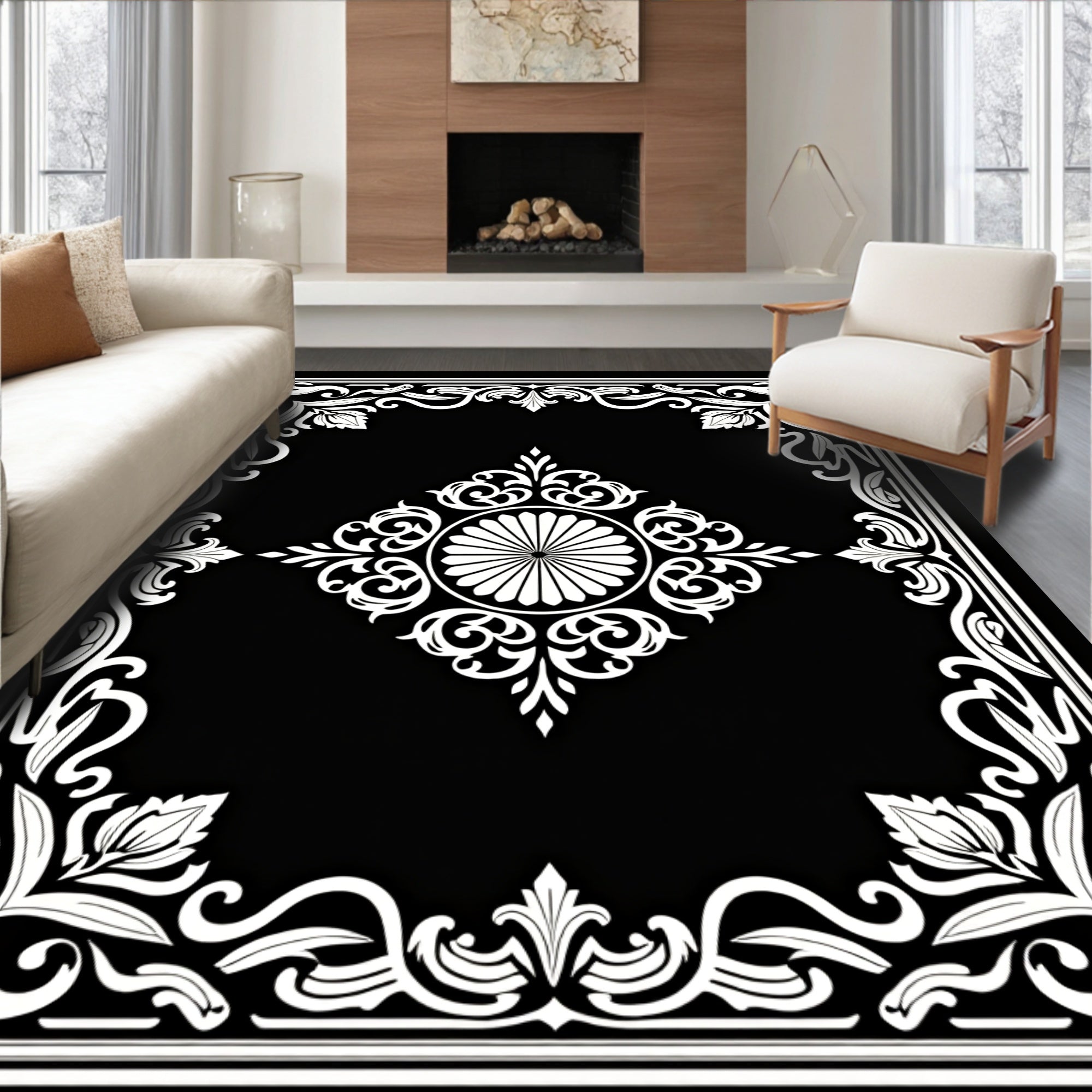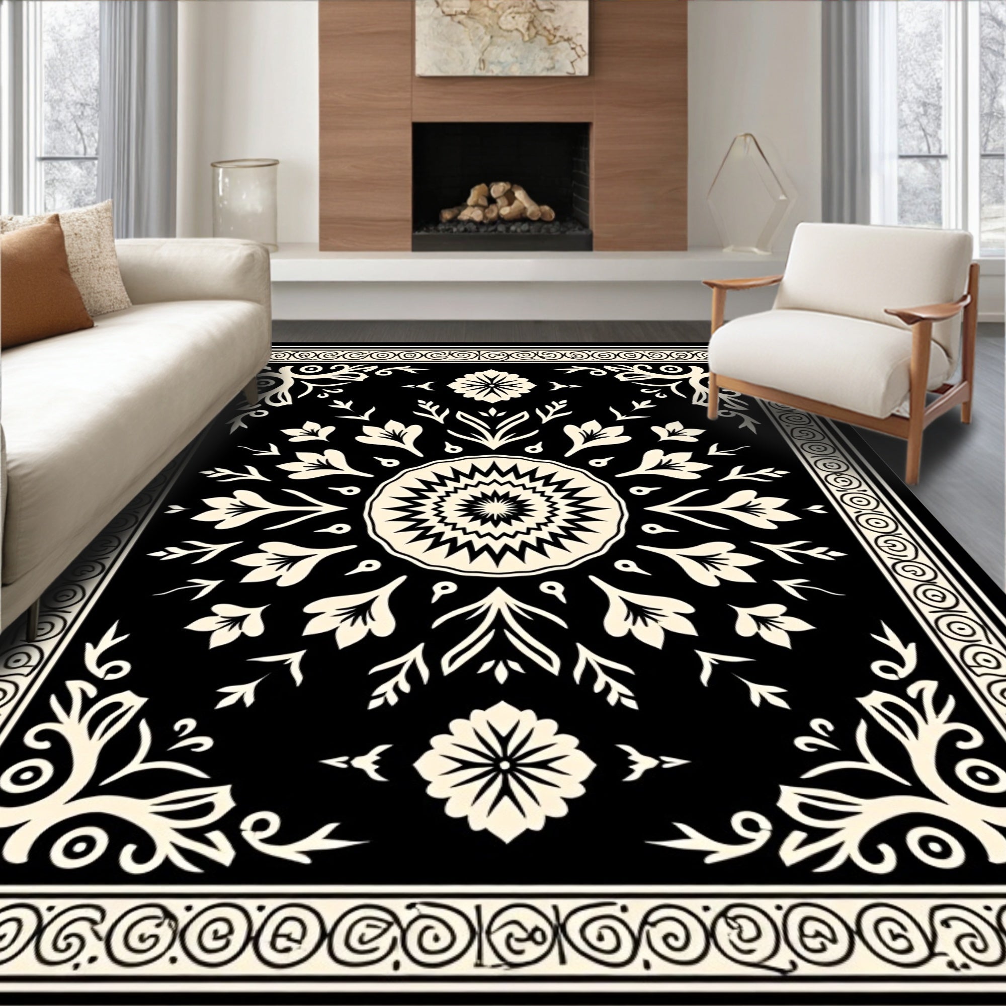 Vintage Floral Medallion Botanical Artistic Decorative Elegant(Black)