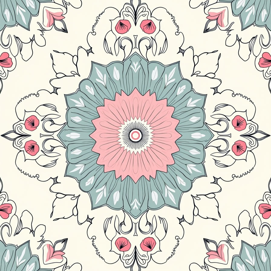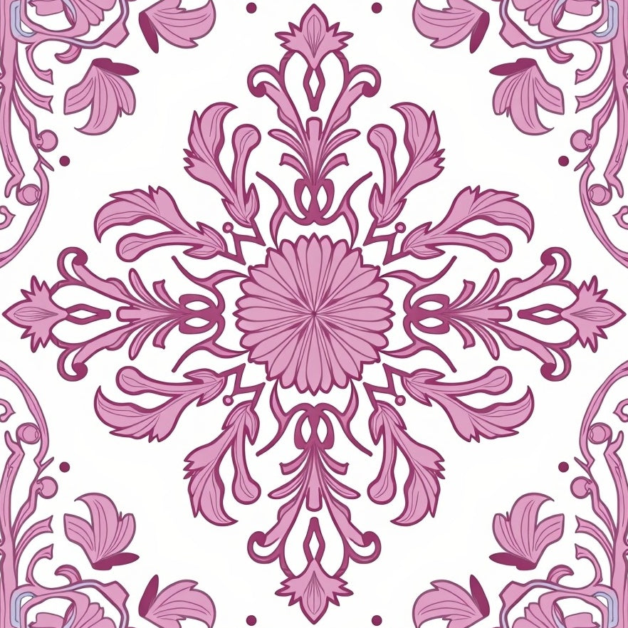 Floral Medallion Cascade with Delicate Petal Mosaic and Art Nouveau Flourish(Pink)