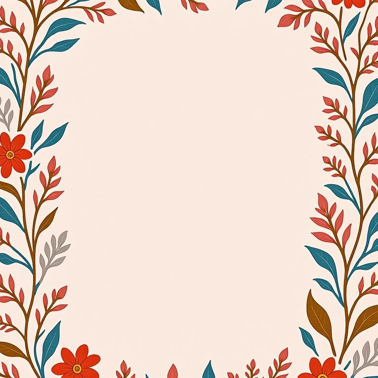 Elegant Boho Floral Frame with Wildflower Sprigs and Swirls(Red)
