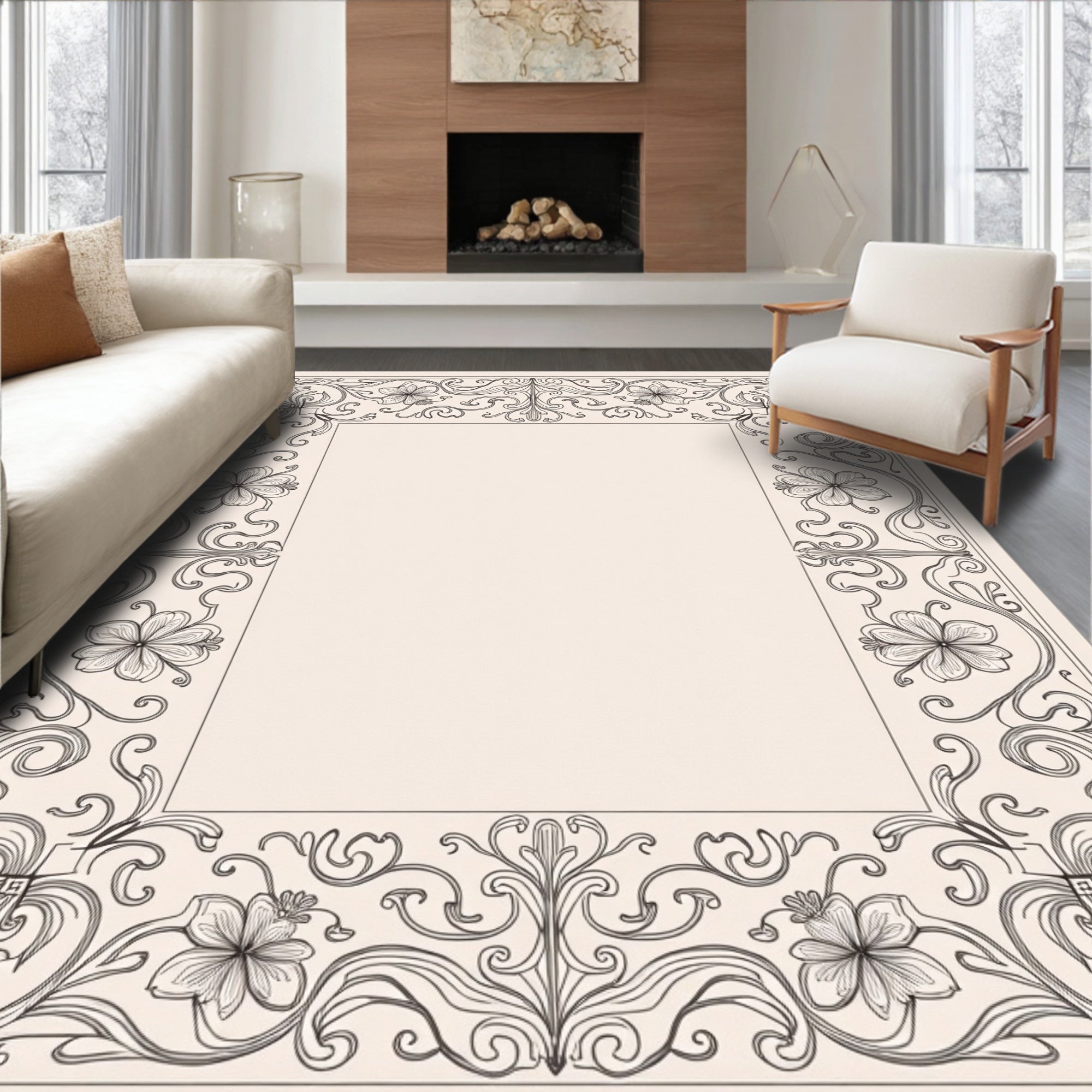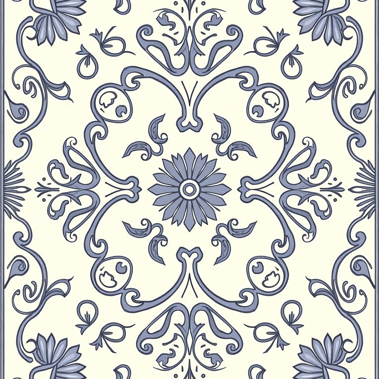 Floral Scrollwork Paisley Ornate Symmetrical(Ivory)