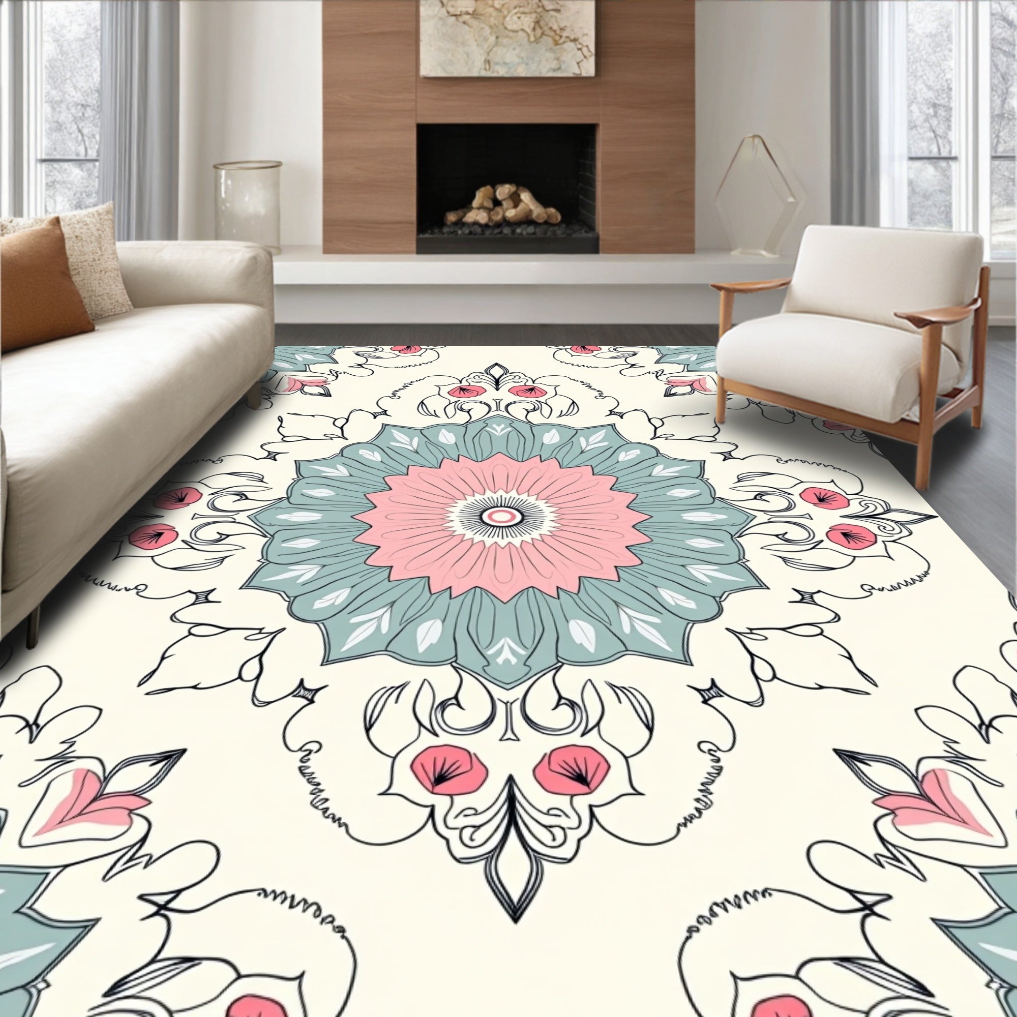 Boho Floral Medallion Motif with Ornate Petal Arrangements and Subtle Hues(Pink)