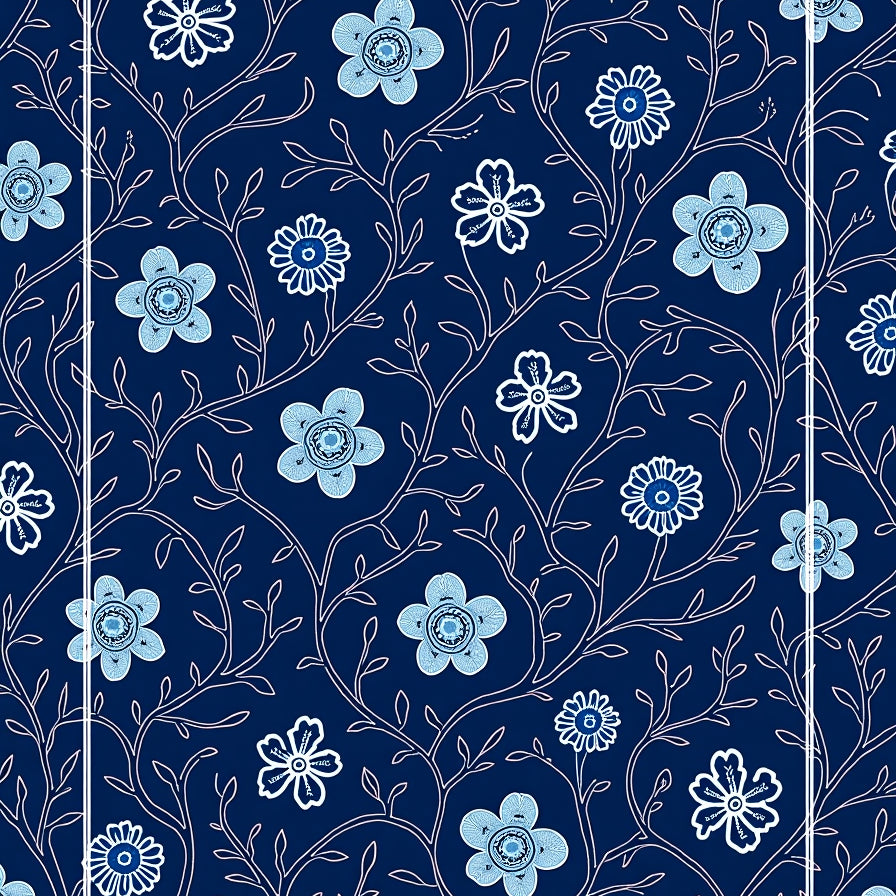 Artisan Floral Scrollwork Interlocking Vine Design (Blue)