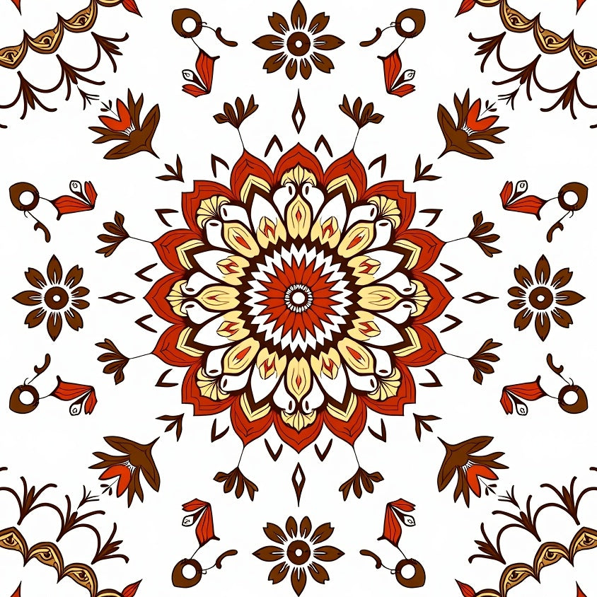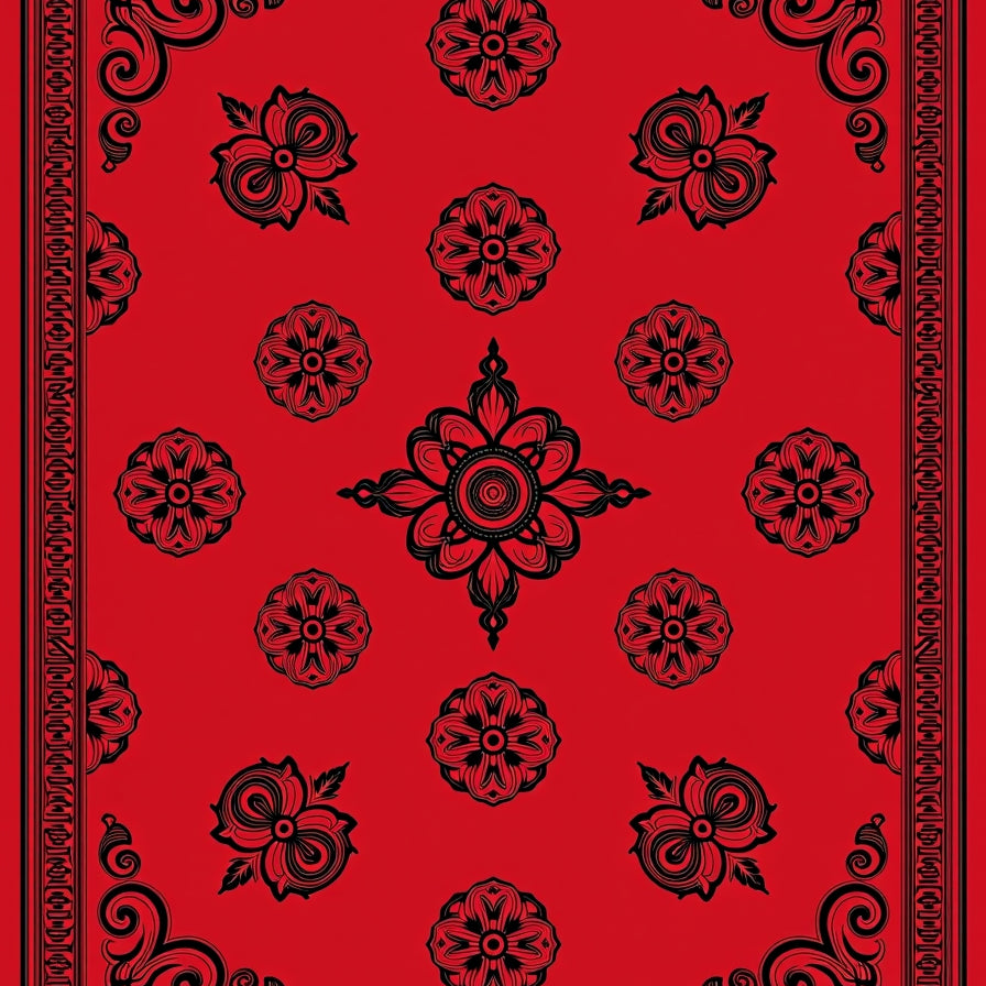 Vintage Medallion Motif with Ornate Floral and Swirl Accents (Red)