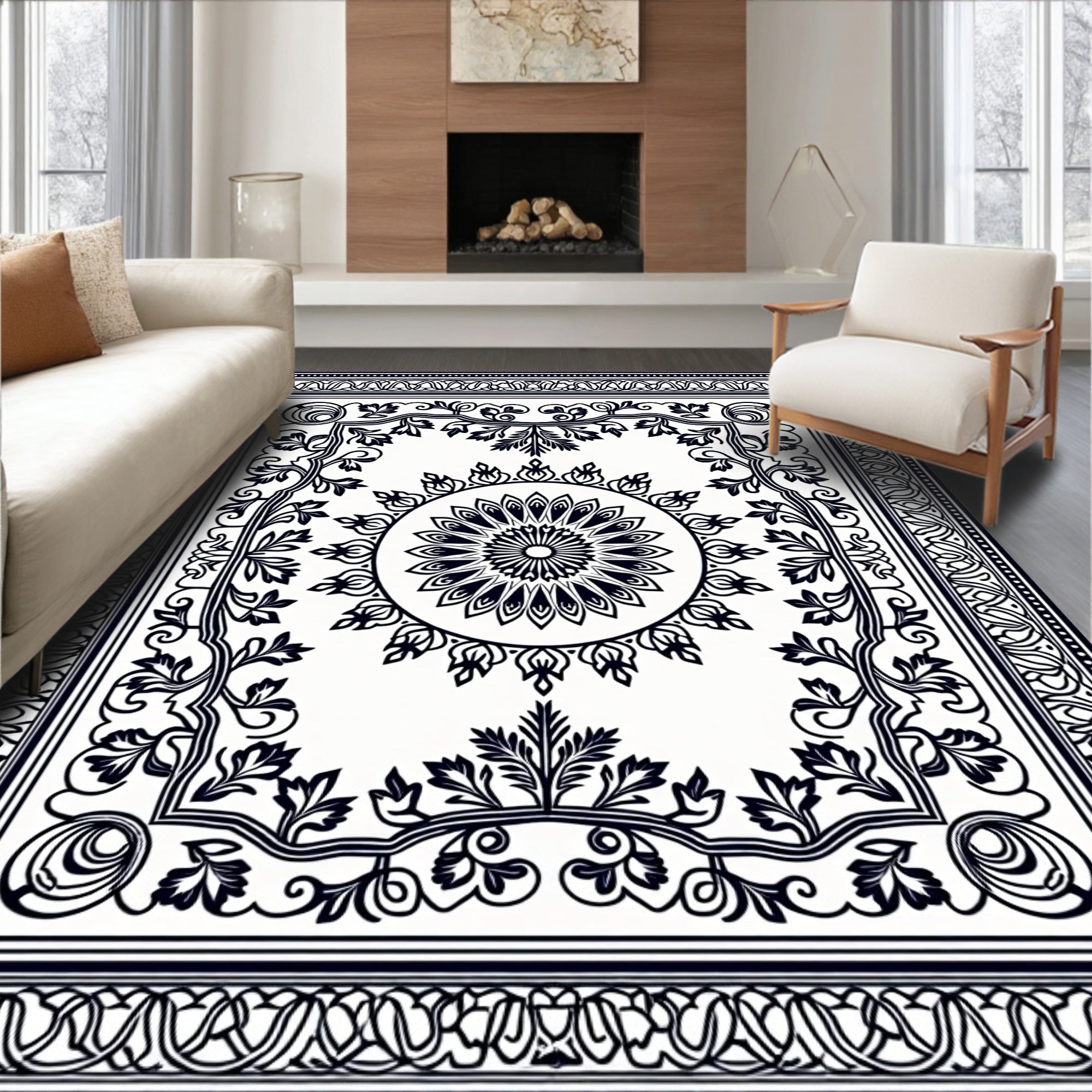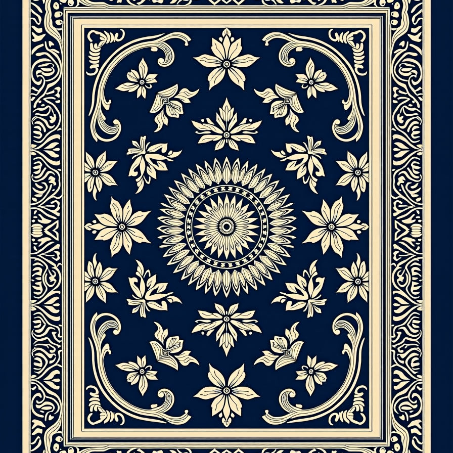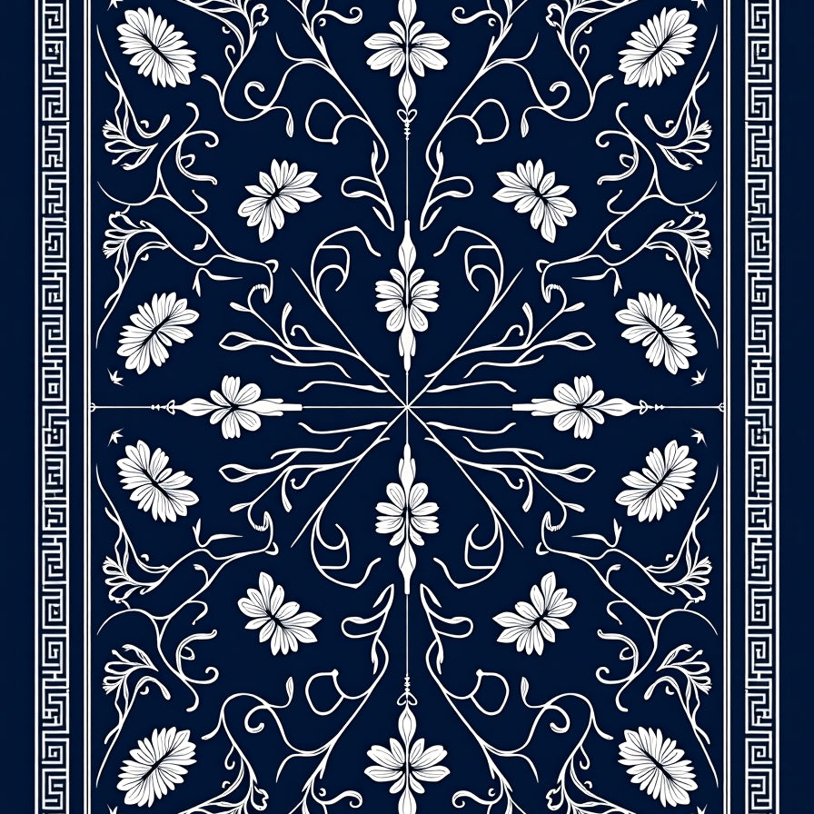 Navy Tapestry Featuring Ornate Interlocking Floral Motifs and Elegant Borders (Black)