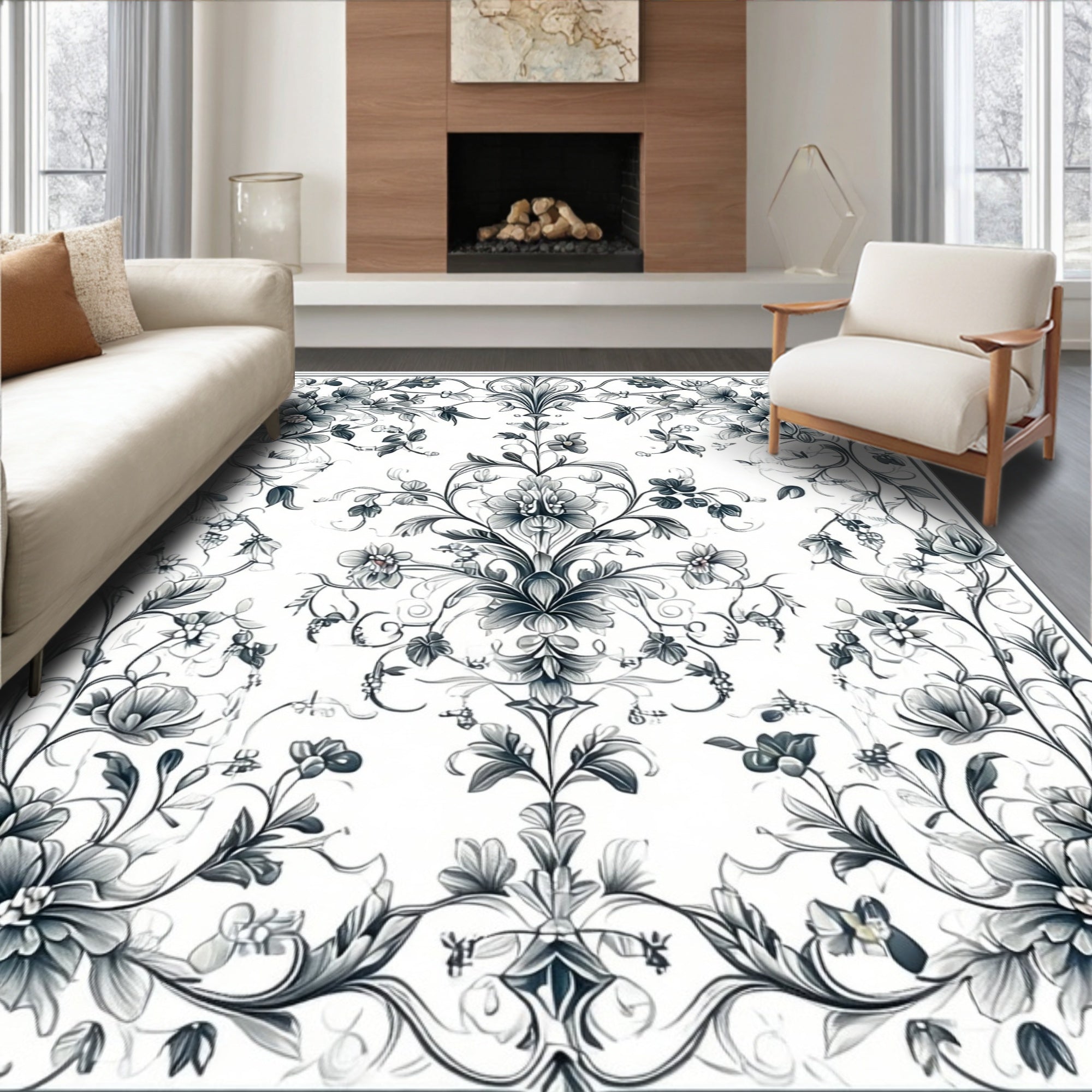 Geometric Borders and Subtle Floral Insets(Beige)