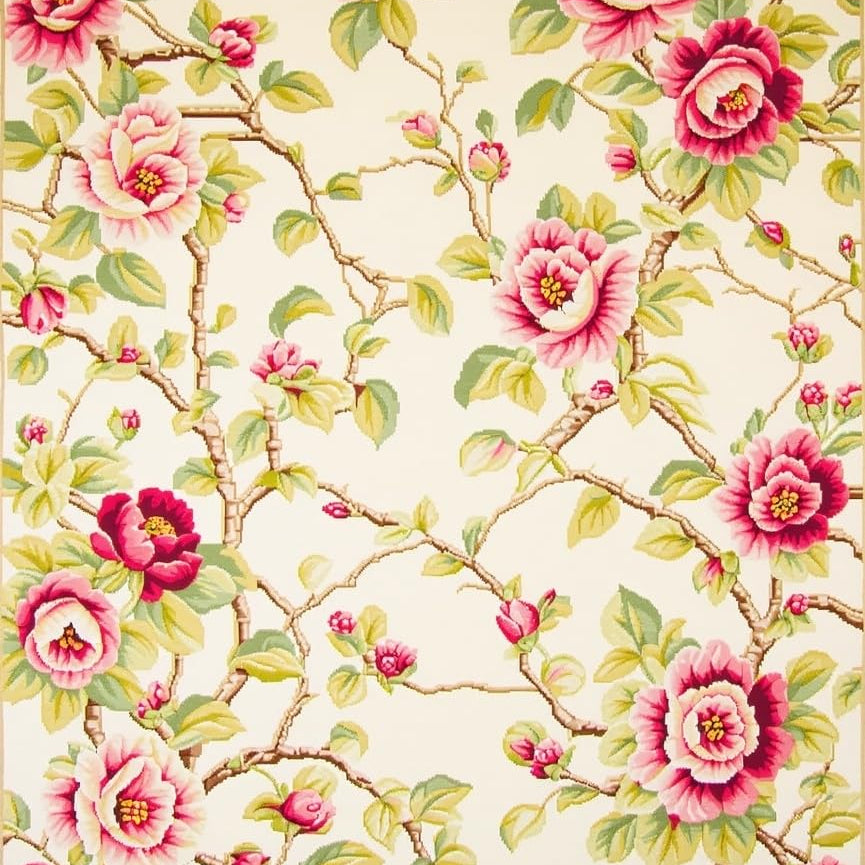 Beige Spring Bloom Entryway Vibrant Flower Area Low Pile Design(Ivory)
