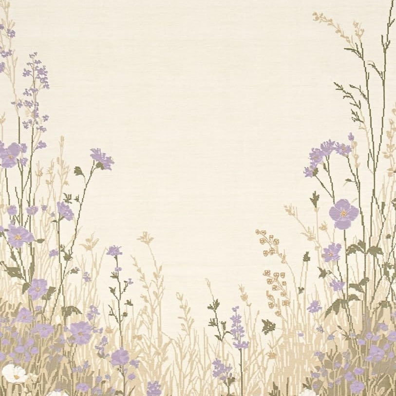 Beige Meadow Area Delicate Wildflower Feel(Beige)