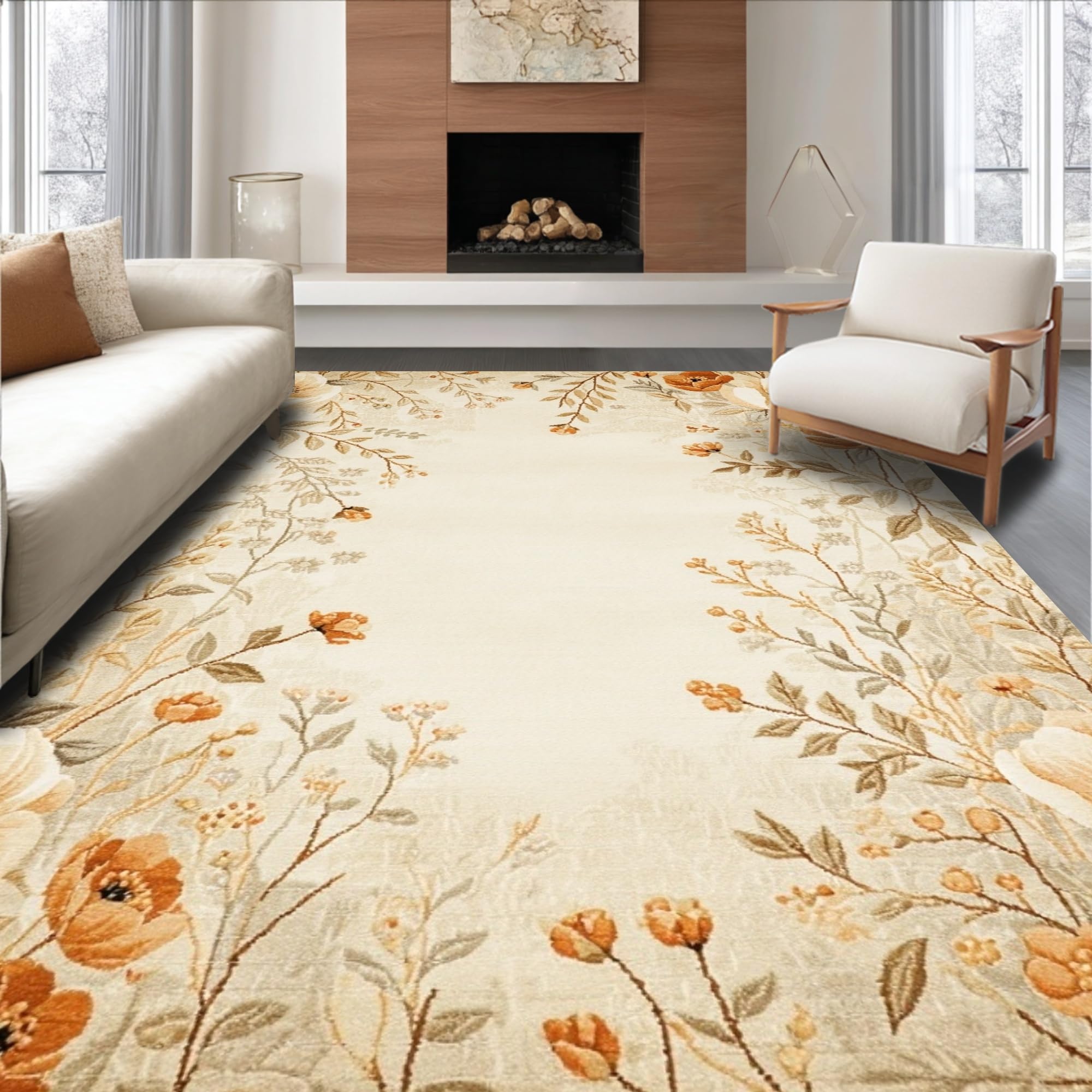 Wild Flower Reversible Area Rug for Patio Deck With Botanical Design(Beige)