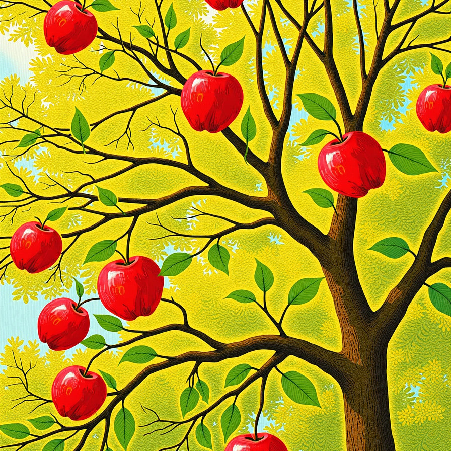 Golden Sunshine Tree Branch Semi Circle with Fresh Fruit Motifs(Red)