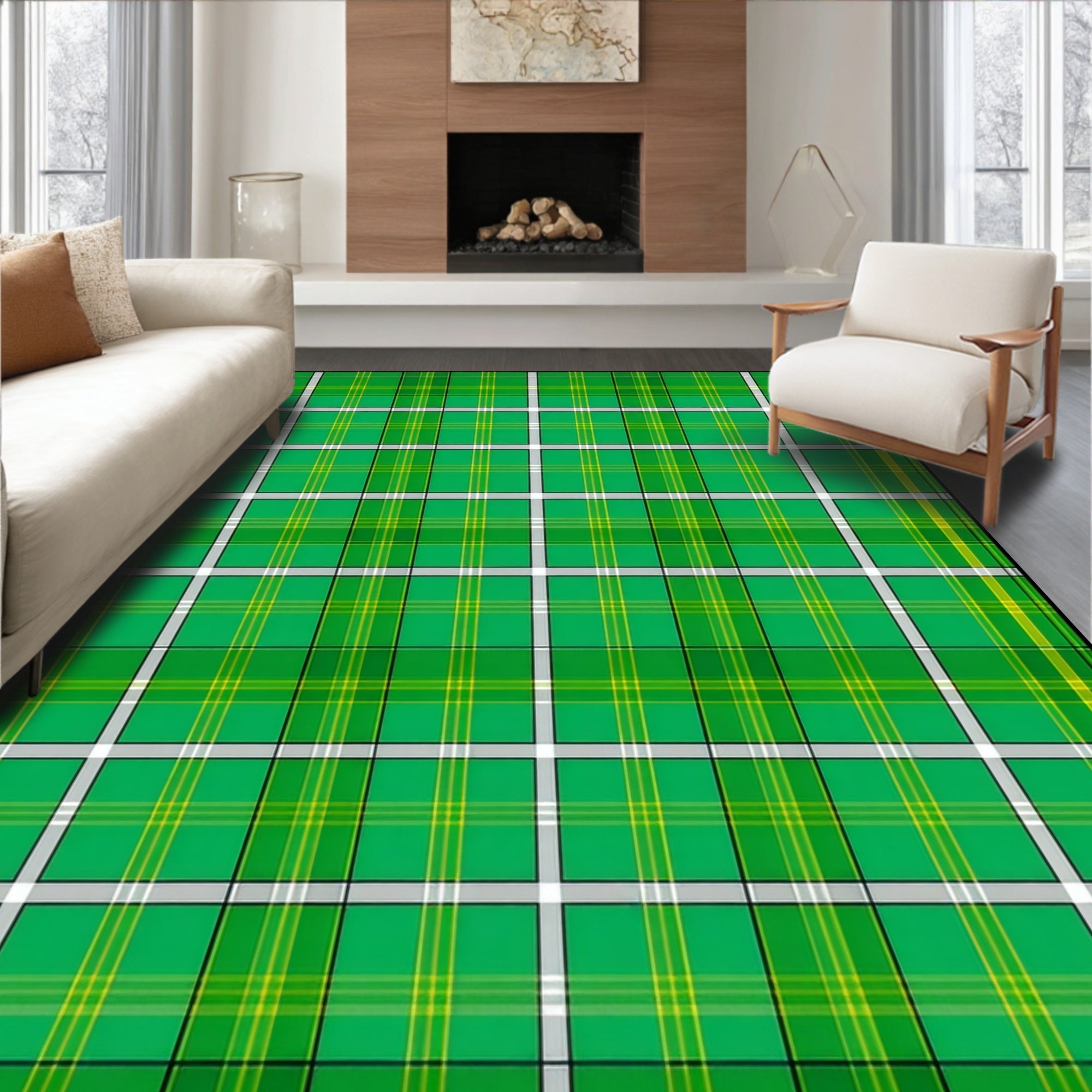 Contemporary Beige Checkered Style(Green)