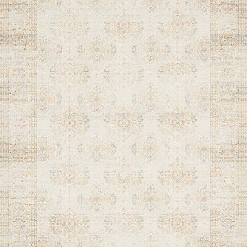 Heritage Medallion Area with Distressed Ornate Motif and Vintage Accents(Ivory)