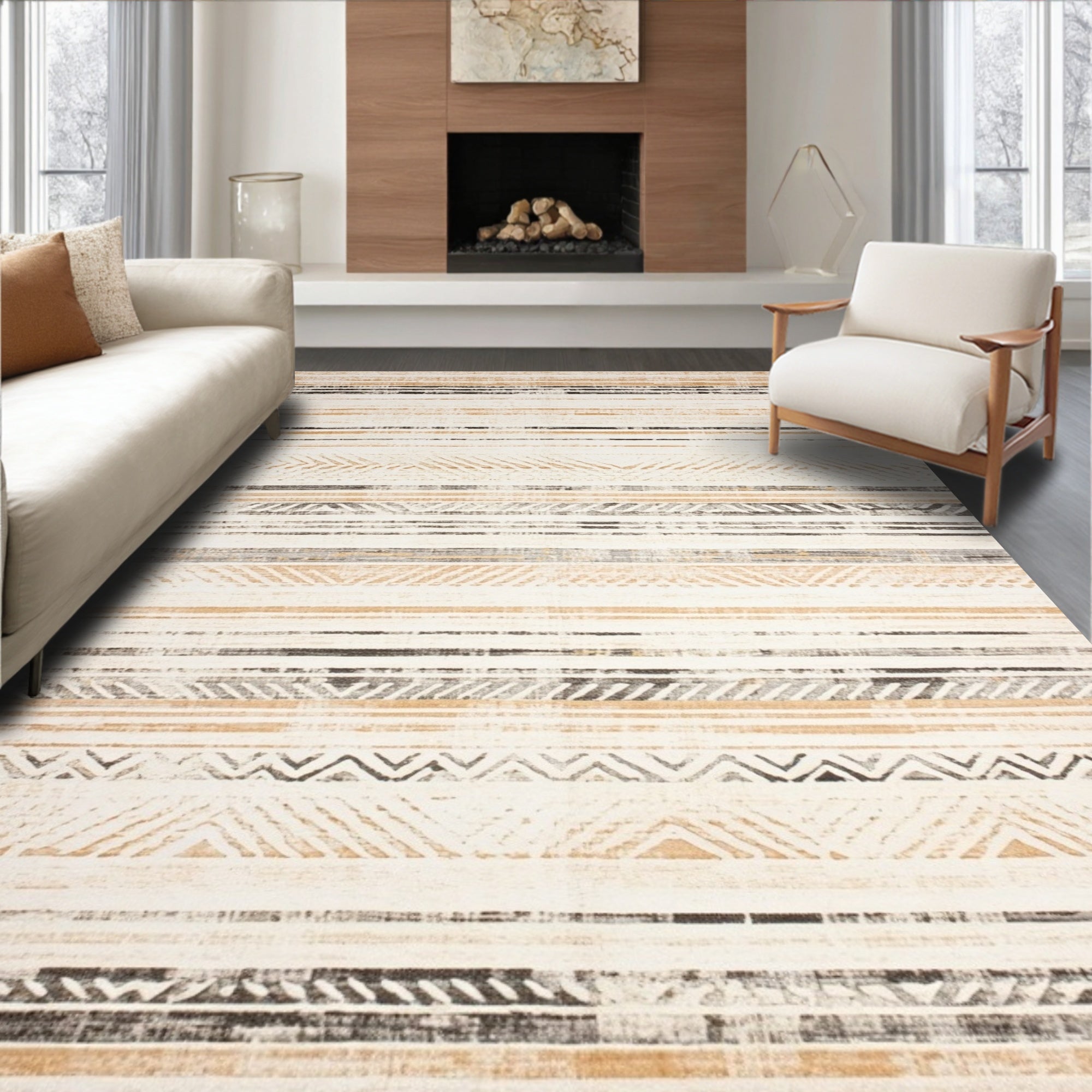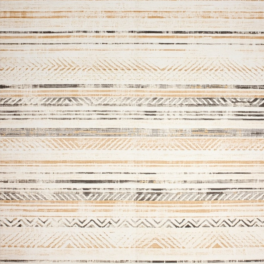 Neutral Area with Faded Chevron and Striped Distressed(Beige)