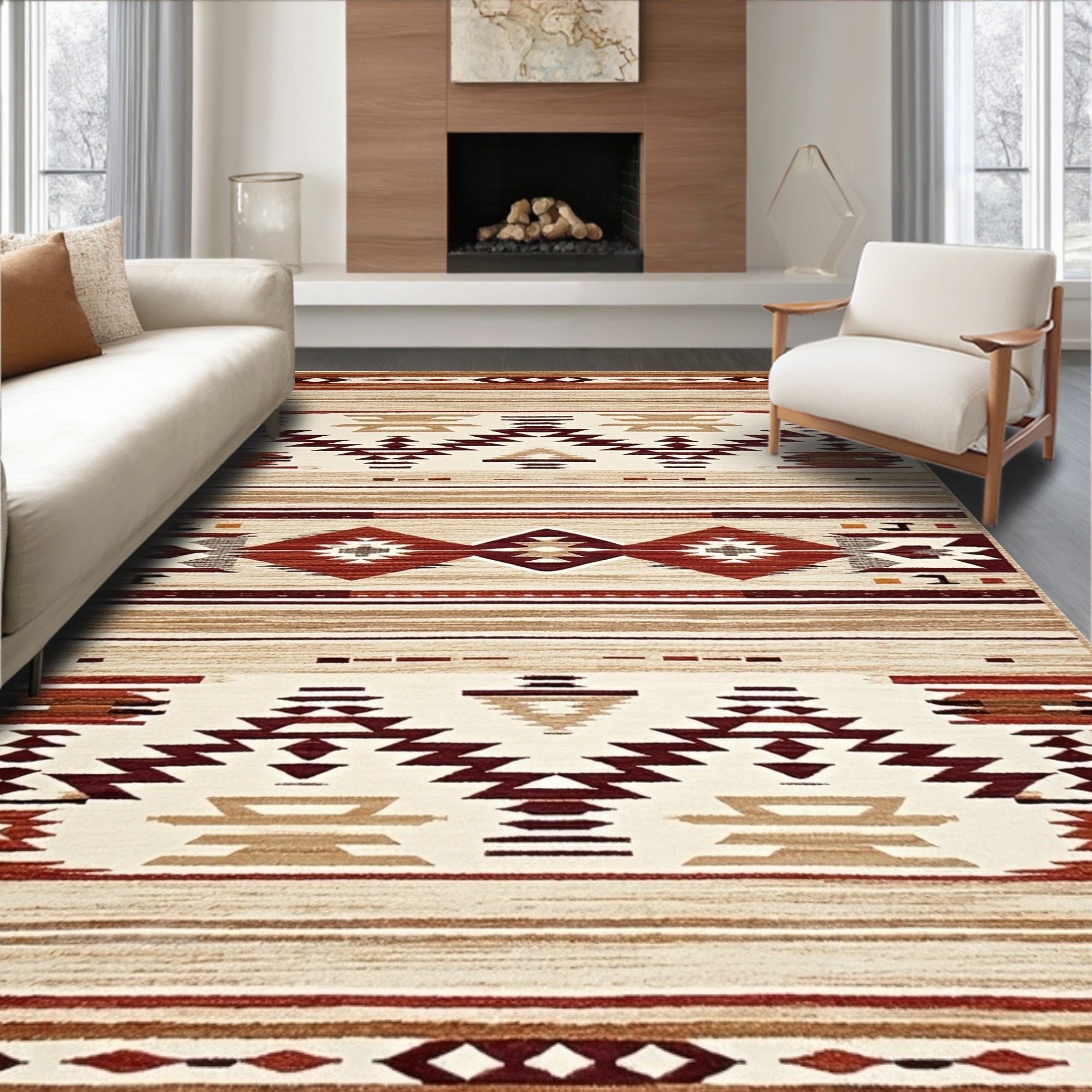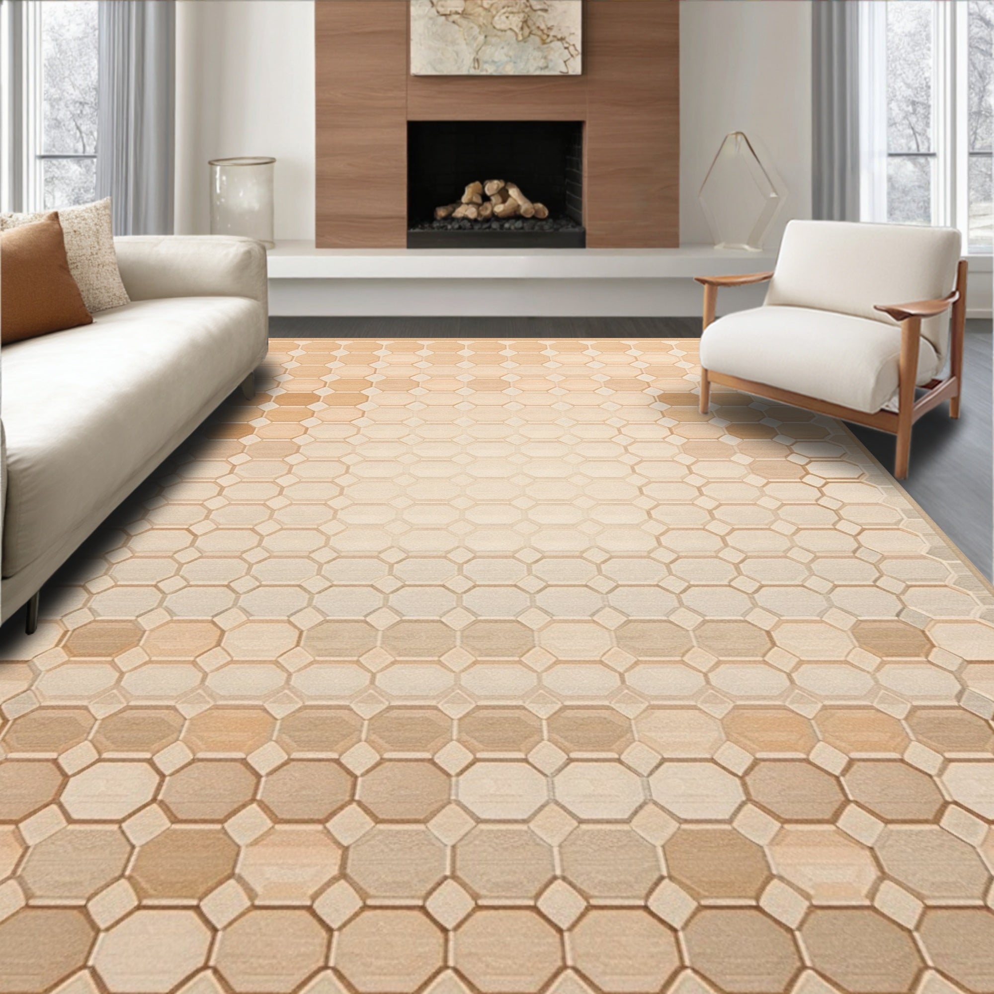 Geometric Intrigue Area in Warm Terracotta and Beige Tones(Beige)