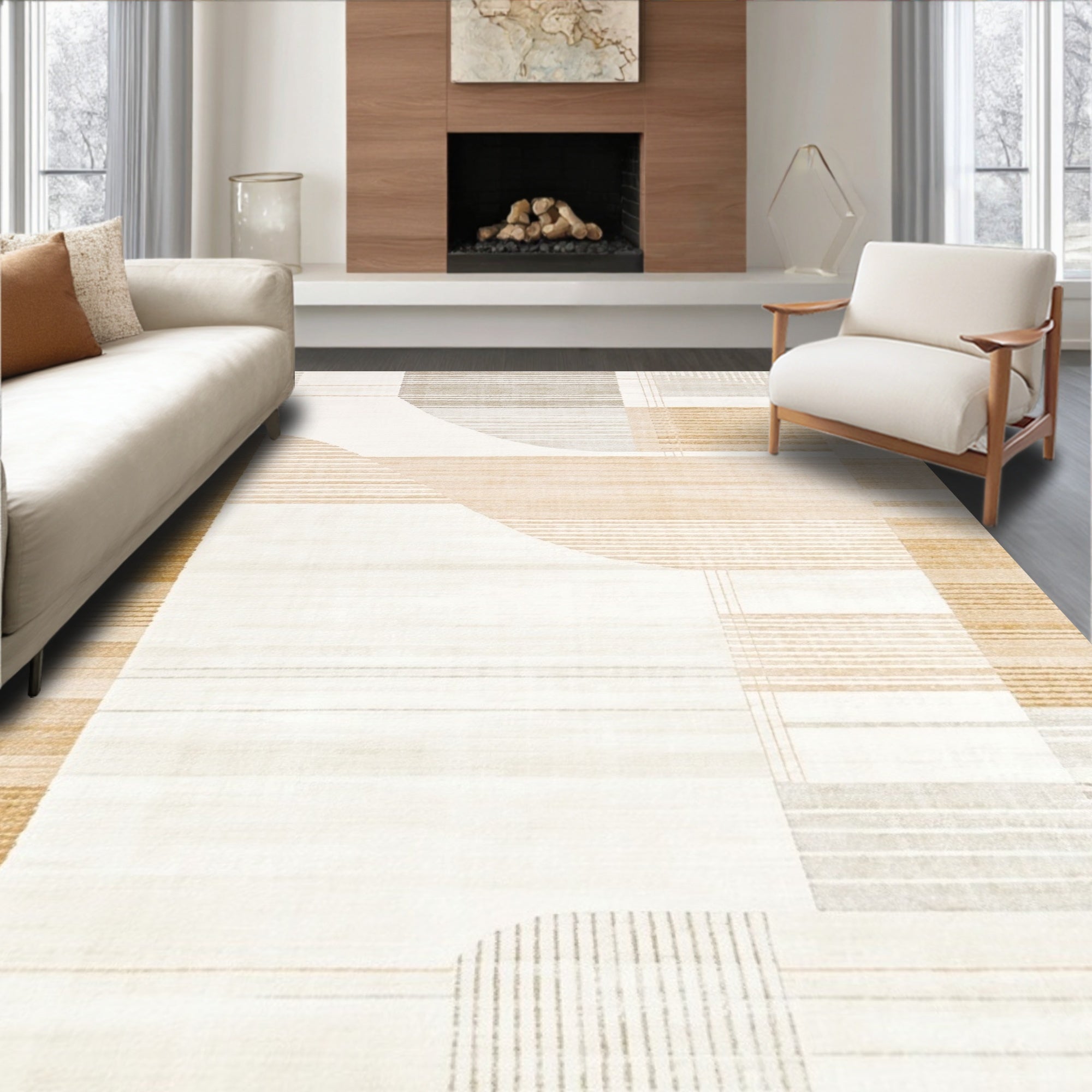 Chic Neutral Geometric with Abstract Line Design(Beige)