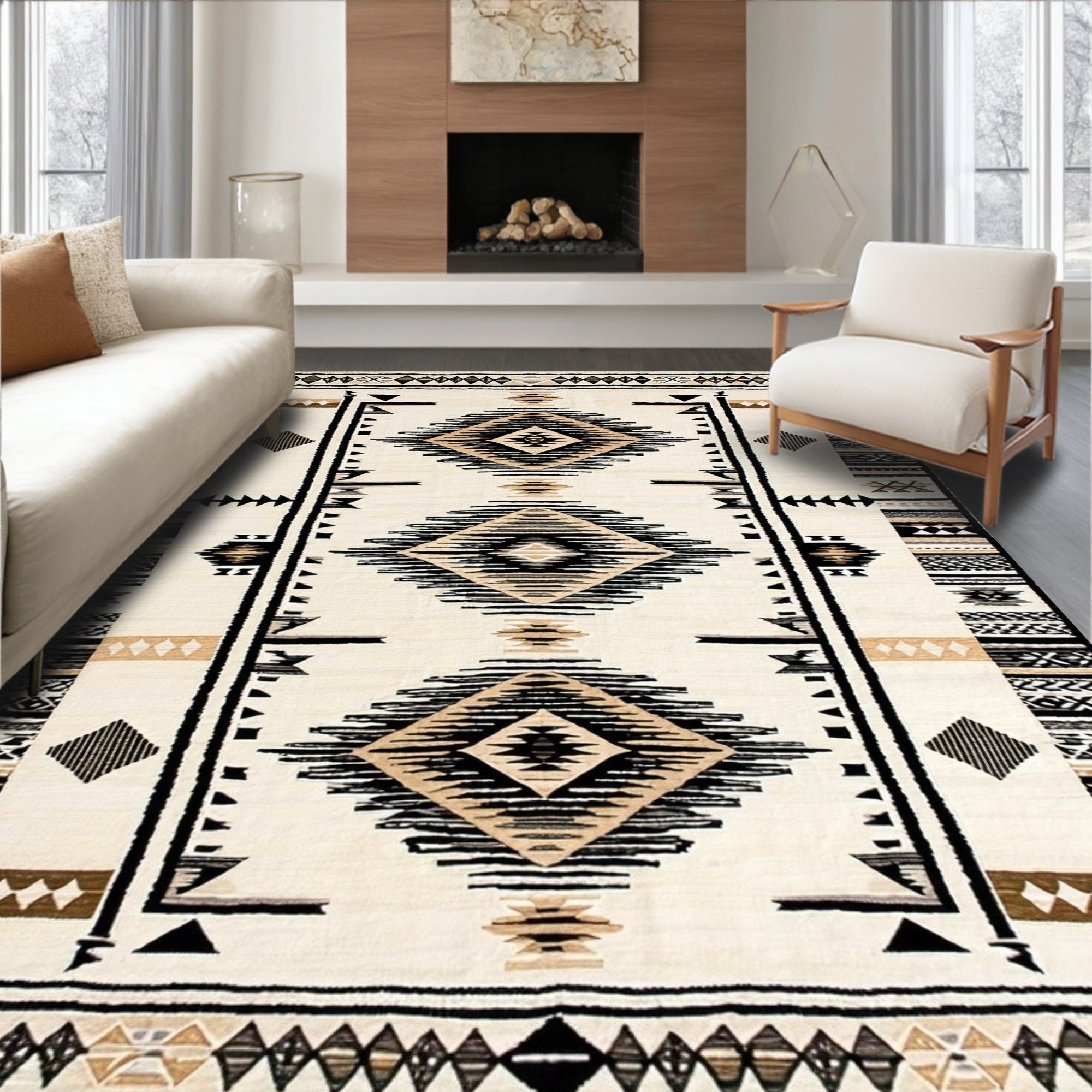 Classic Black and Beige Striped Area(Beige)