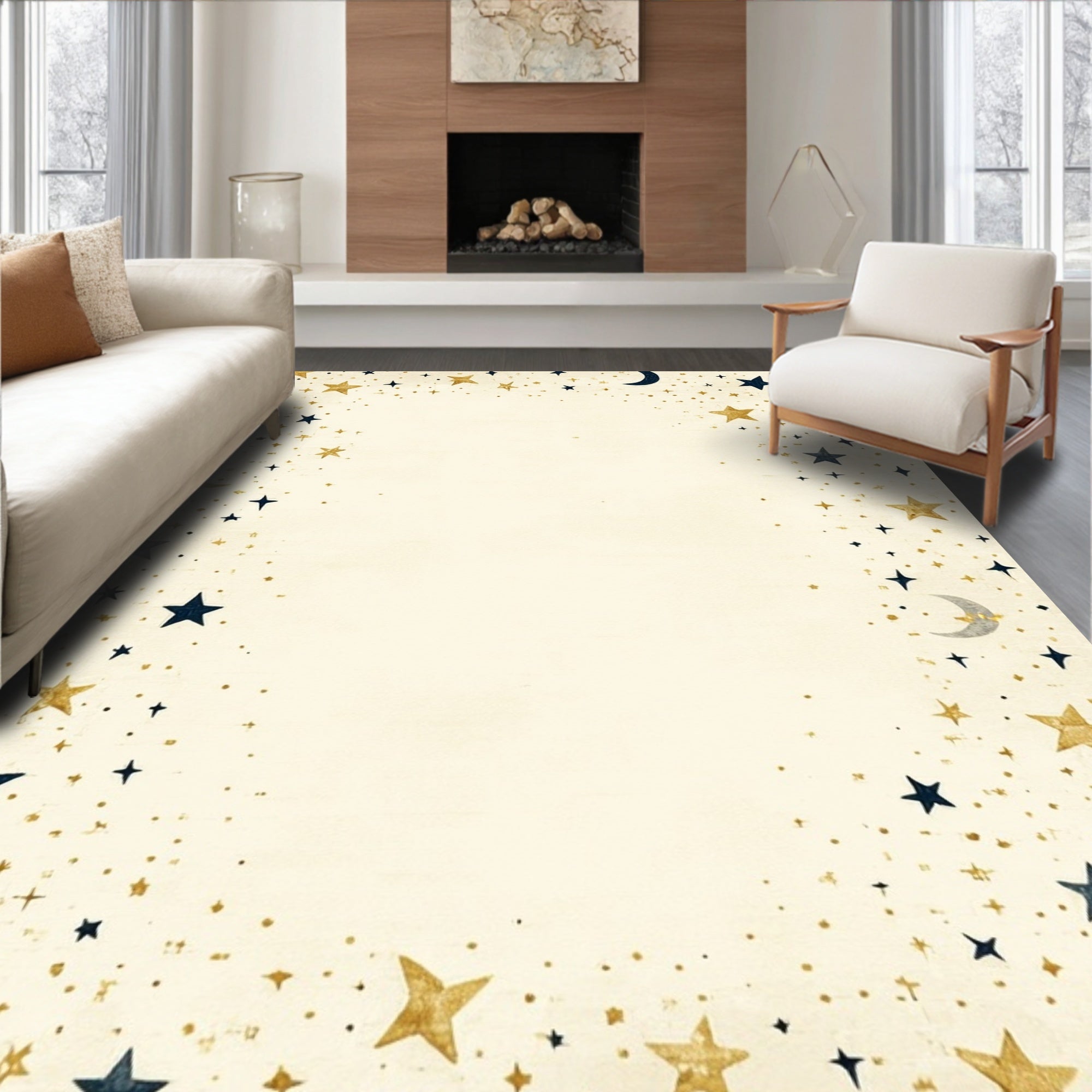 Cosmic Dance Beige Half Moon Area with Star Motifs Witchy(Beige)
