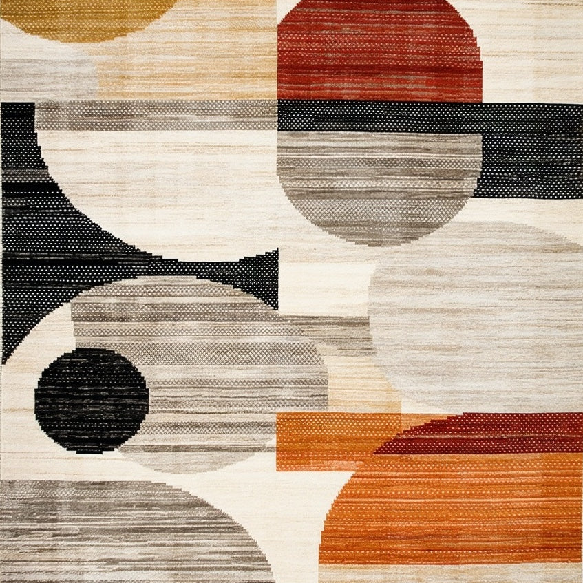 Circles Geometric Abstract Rustic Warm Colors Area Beige Black(Beige)