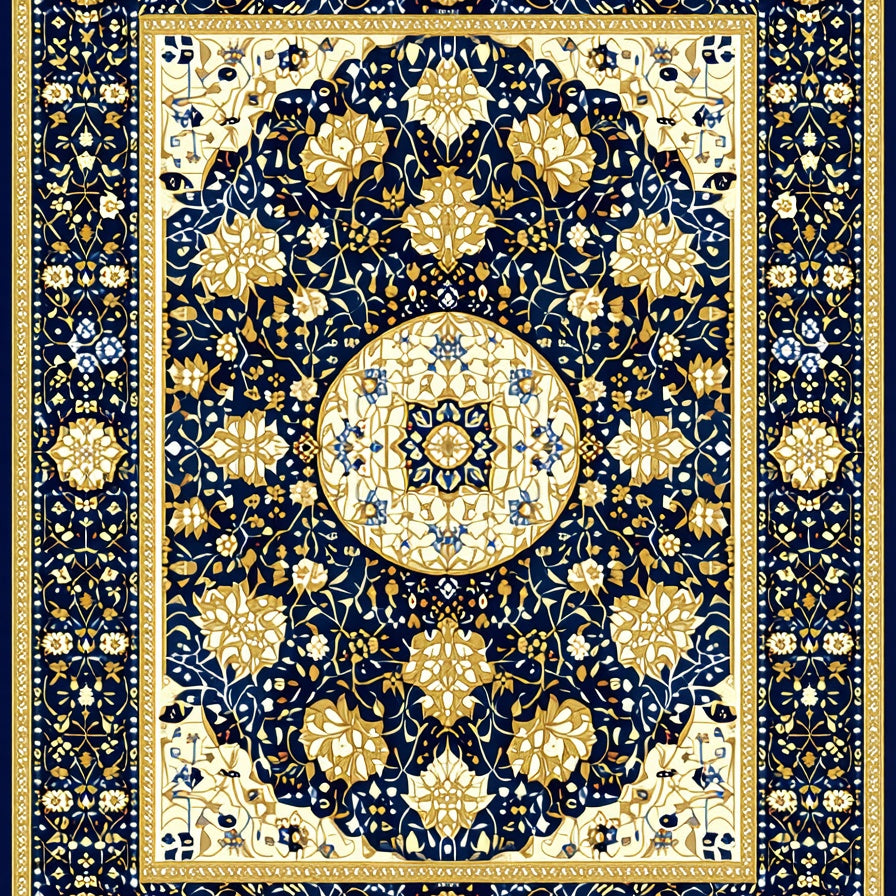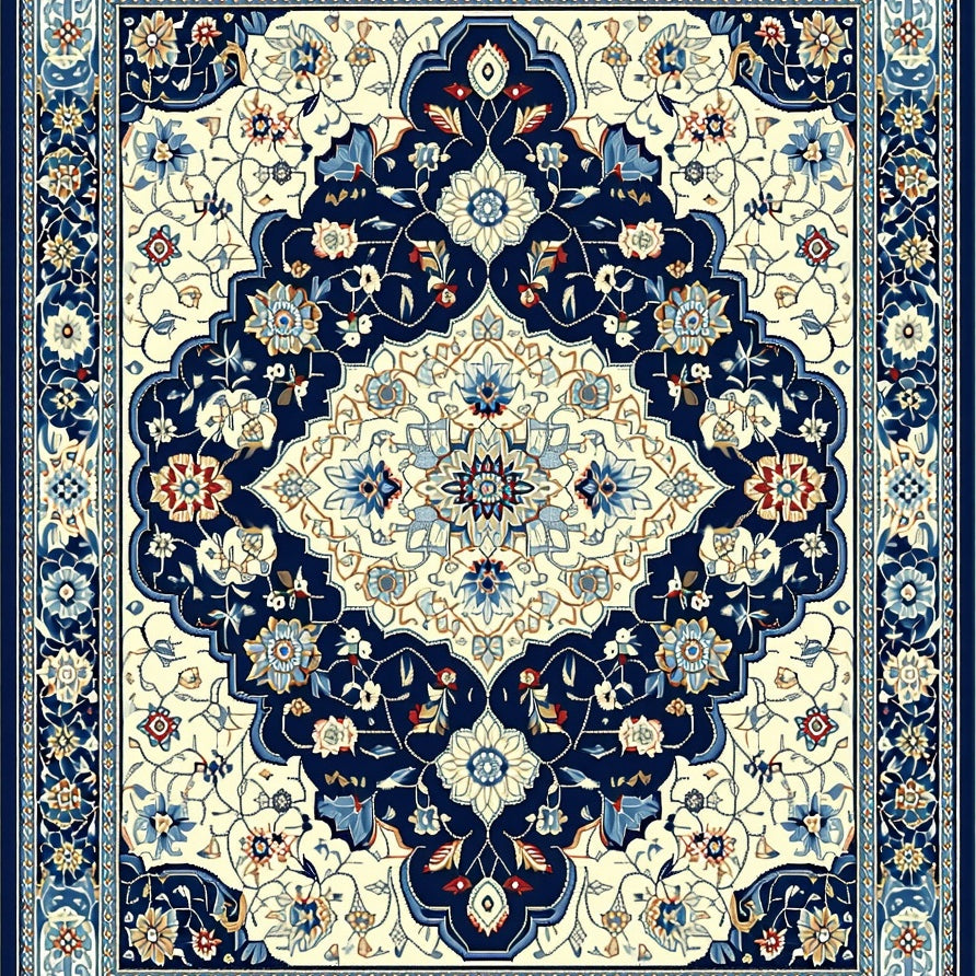 Elegant Medallion Navy Beige Coastal Floral(Ivory)