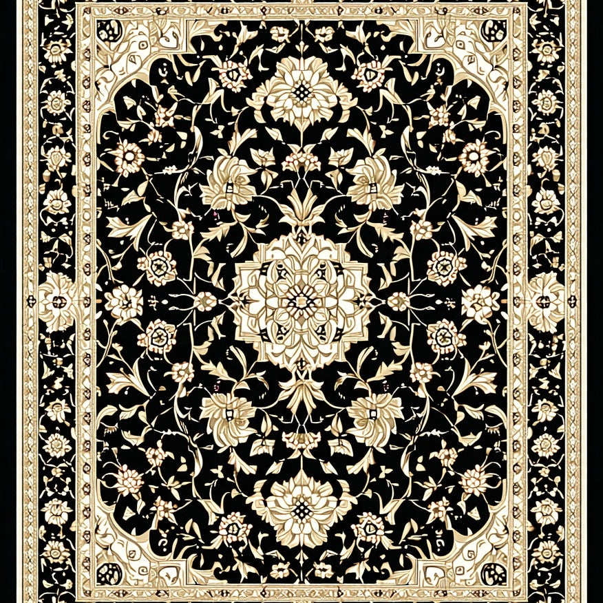 Elegant Traditional Area with Intricate Black and Beige(Black)