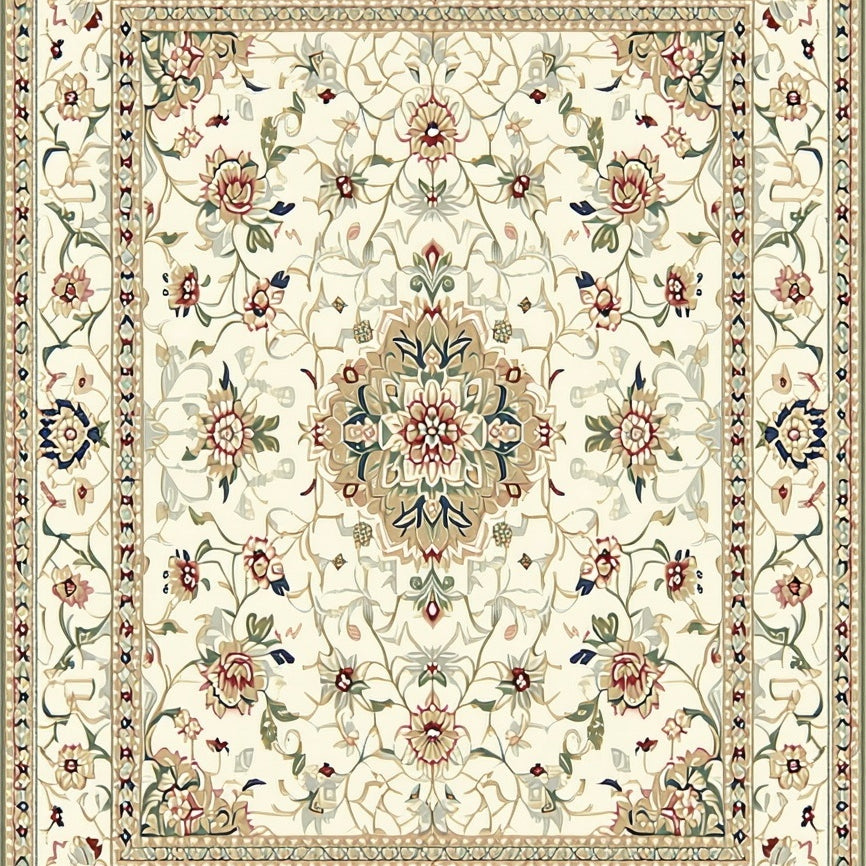 Refined Beige Area Featuring Intricate Floral and Geometric Motifs(Ivory)