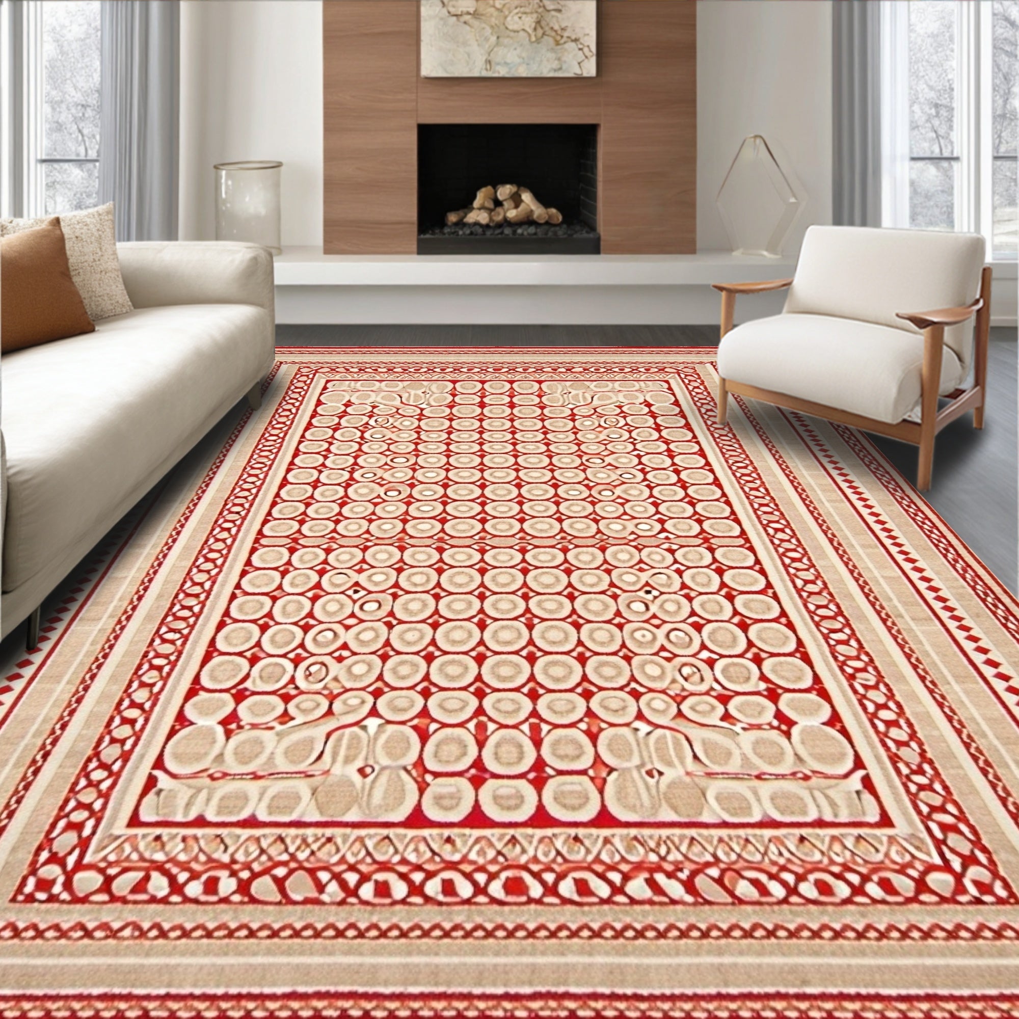 Modern Medallion Low Pile Non Slip Durable Easy Clean(Red)