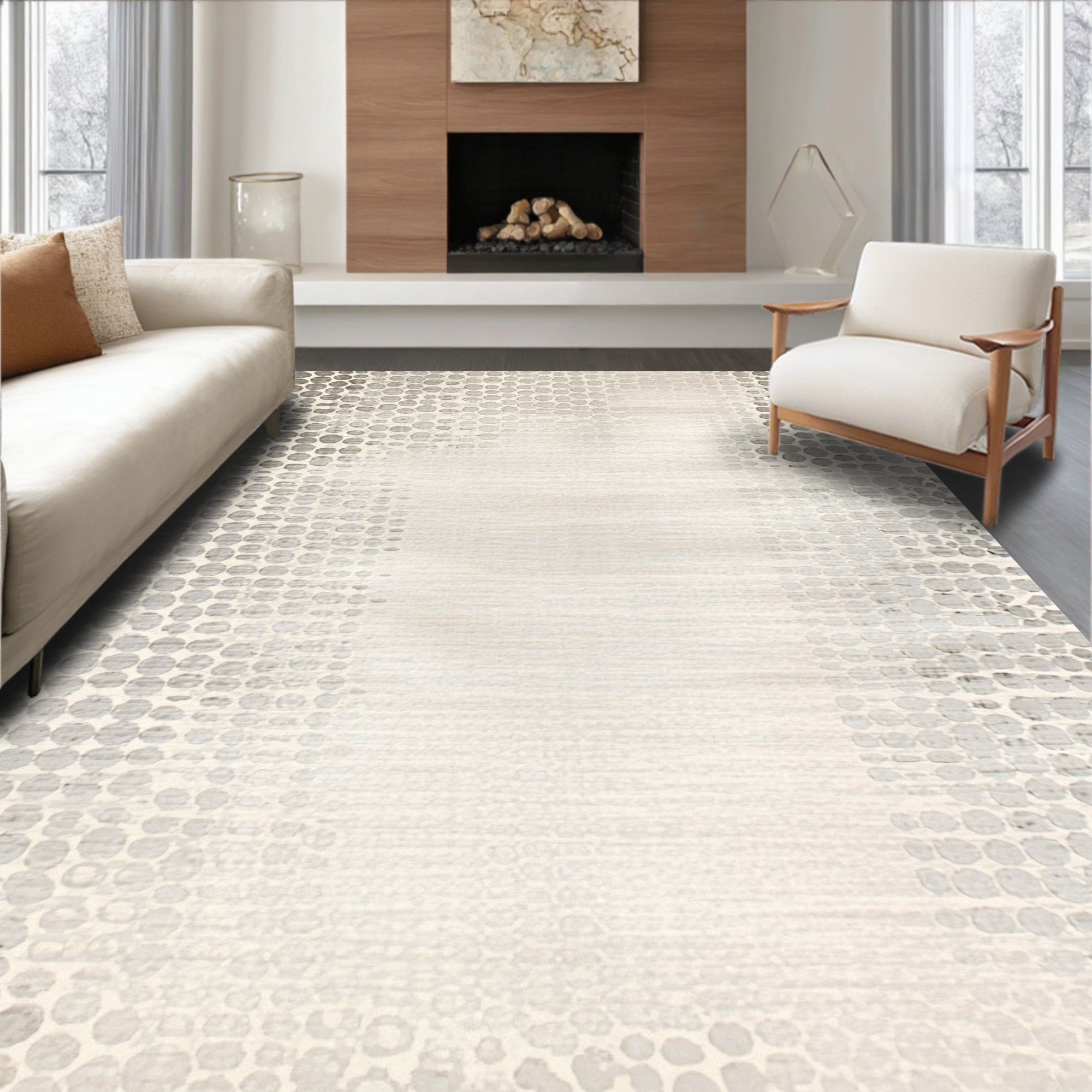 Contemporary Area Featuring Subtle Beige and Grey Abstract Spotted Motif(Beige)