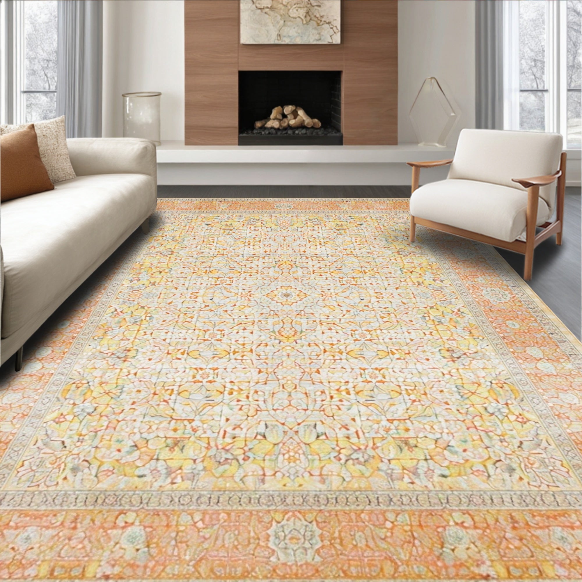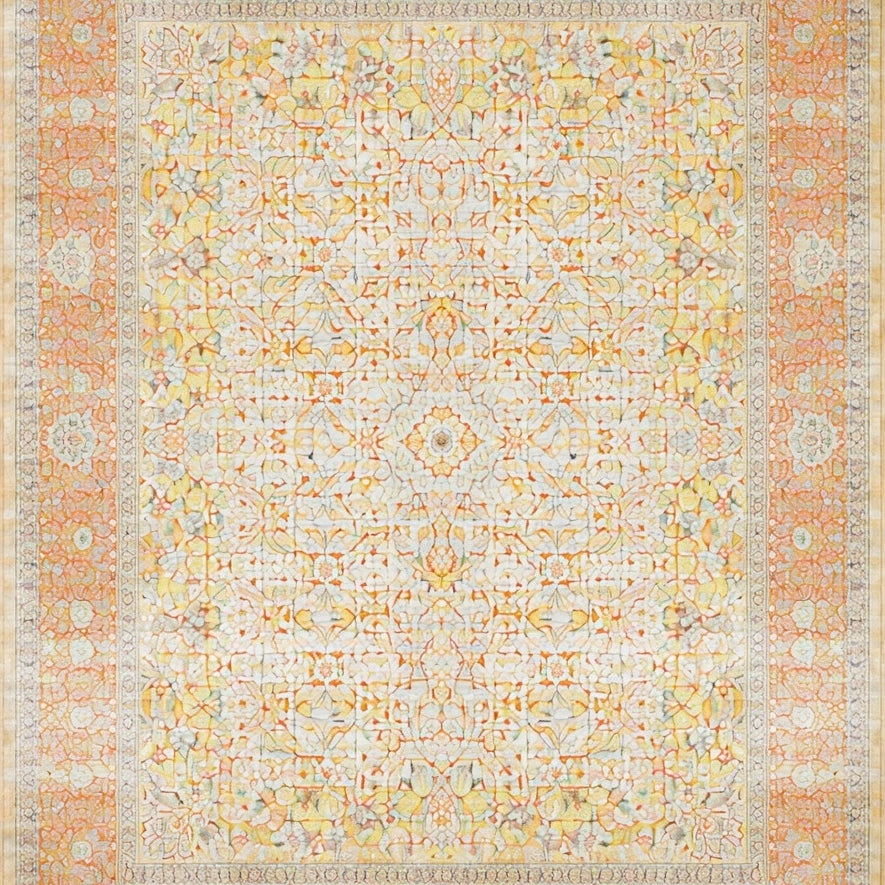 Modern Ornate Lattice Area Featuring Abstract Botanical Medallion Design(Yellow)