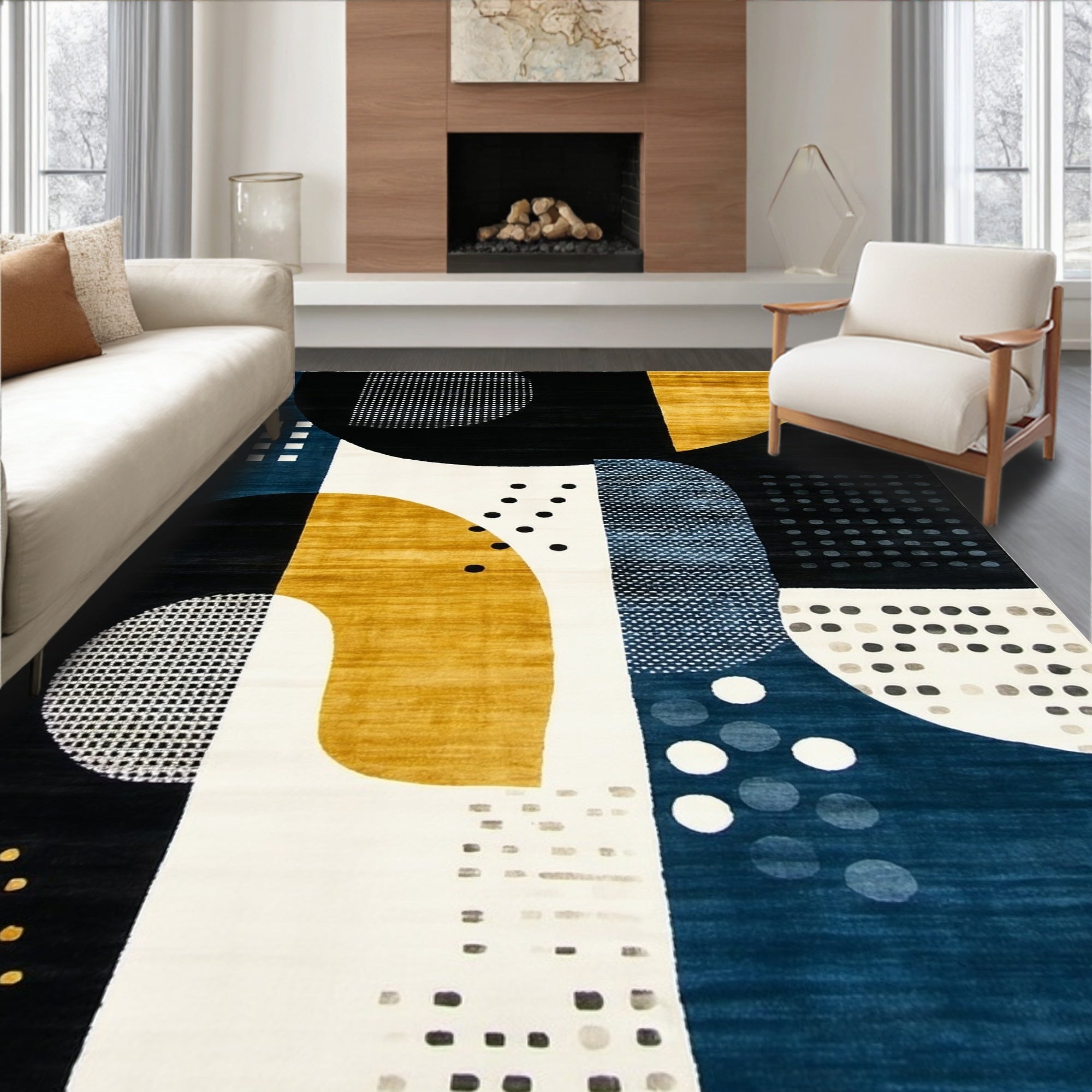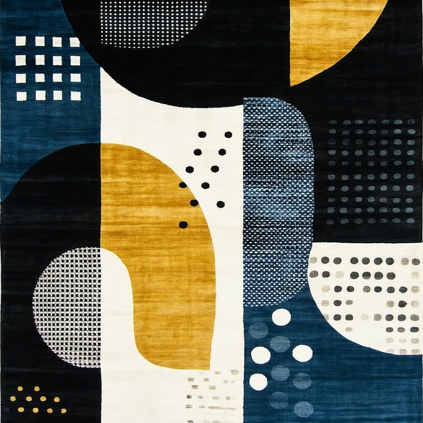 Modern Abstract Spotted Area with Navy and Mustard Accents(Gold)