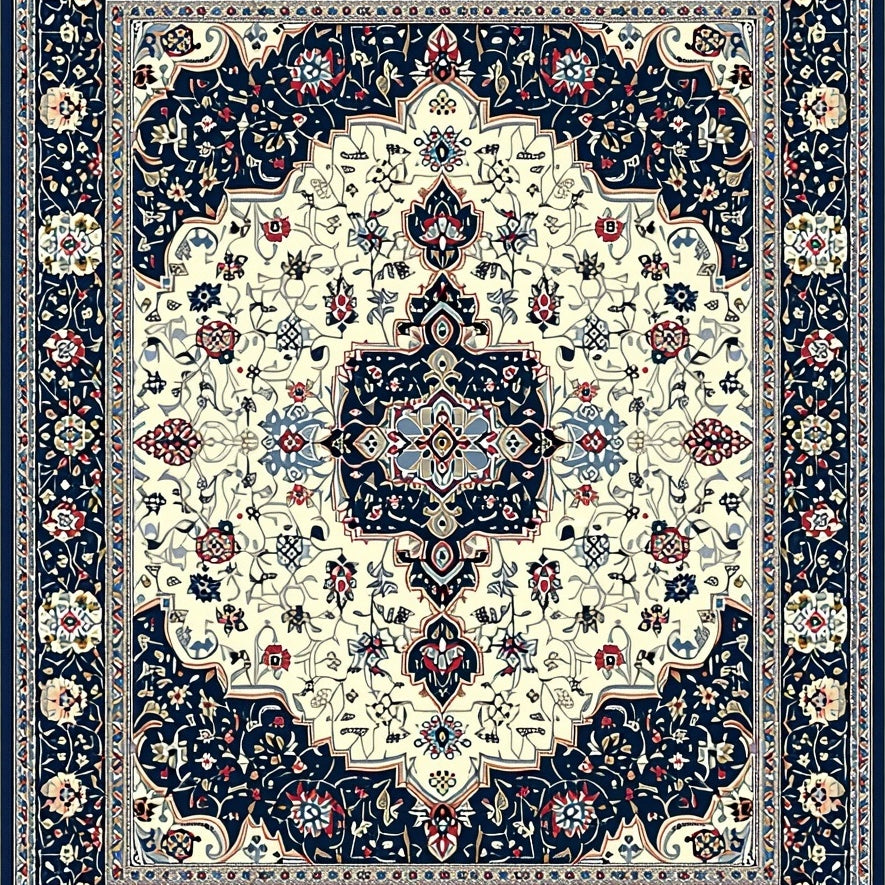 Elegant Medallion Floral Area Navy Beige Non Shedding(Blue)