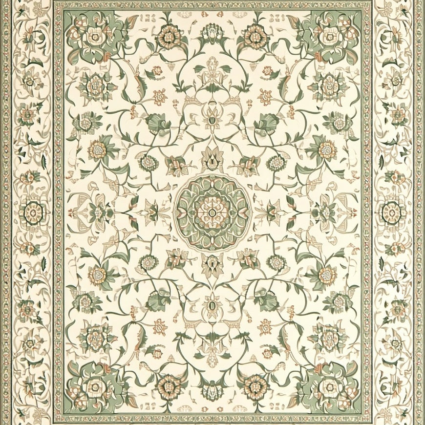 Patio Backyard Oasis Beige Sage Green Floral Medallion Indoor(Ivory)