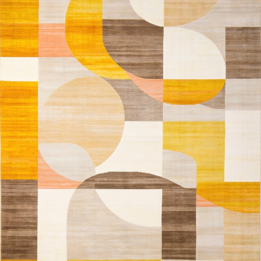 Modern Abstract Tan Beige Yellow Geometric Bathroom Floor Mat(Yellow)