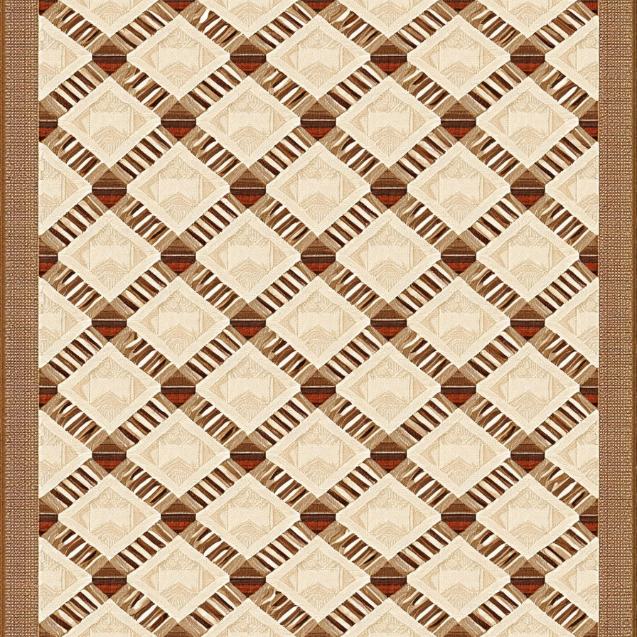 Contemporary Round with Geometric Diamond Motifs(Beige)