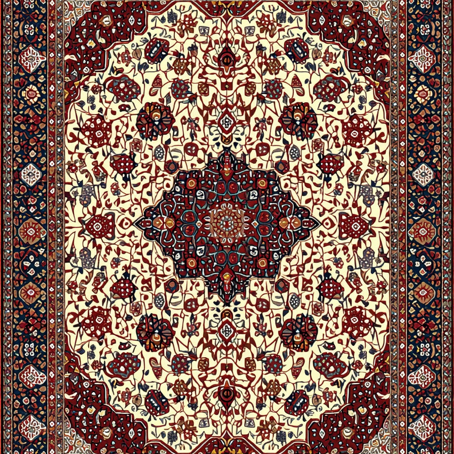 Botanical Medallion with Lattice Trellis and Leaf Motifs(Beige)