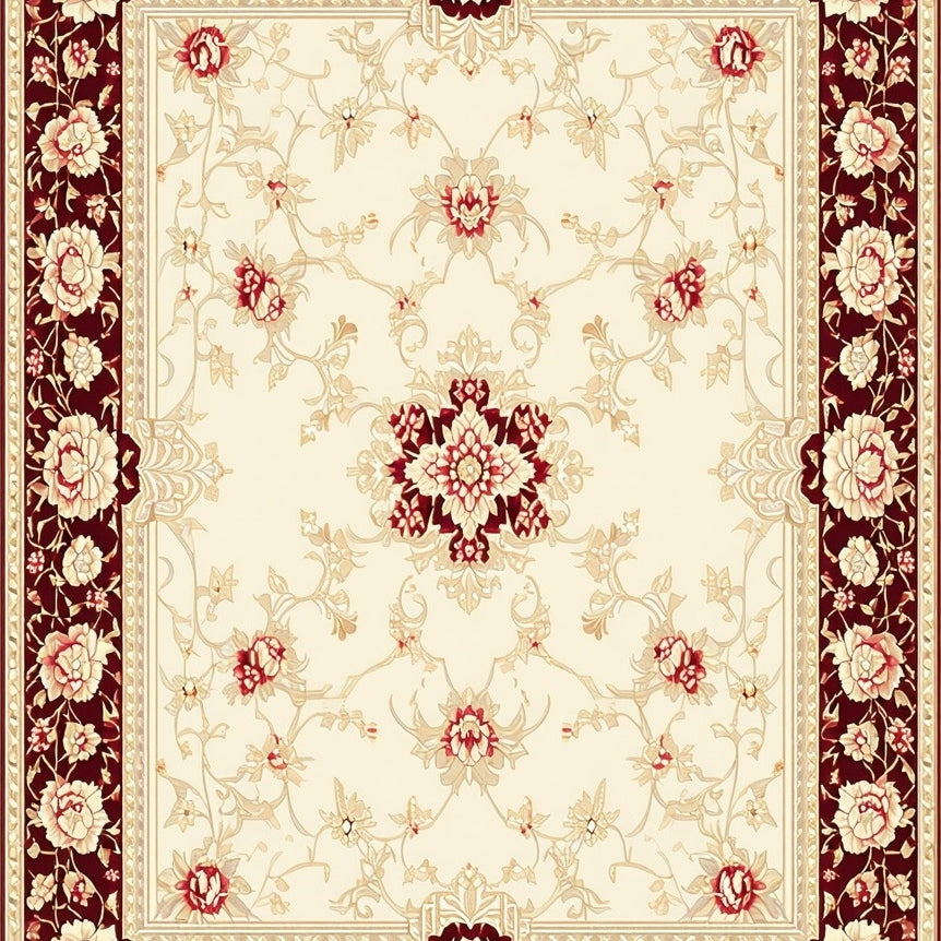 Retro Nostalgic Floral Beige Area Classic Accent(Beige)