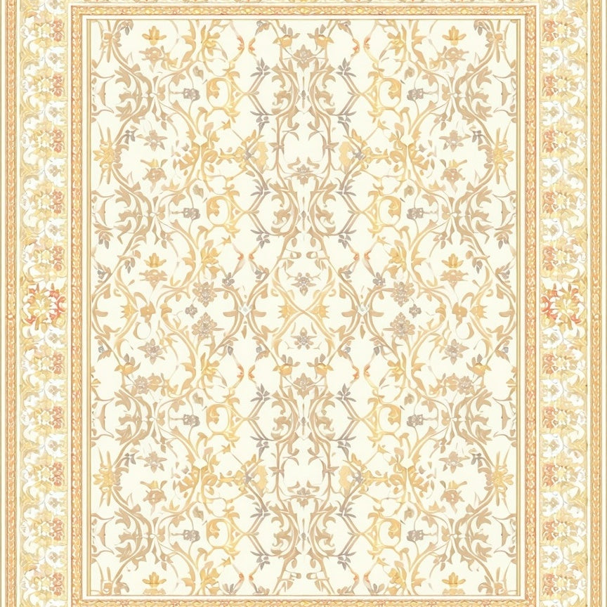 Ornamental Lattice Featuring Damask Flourishes and Vintage Vinework(Ivory)
