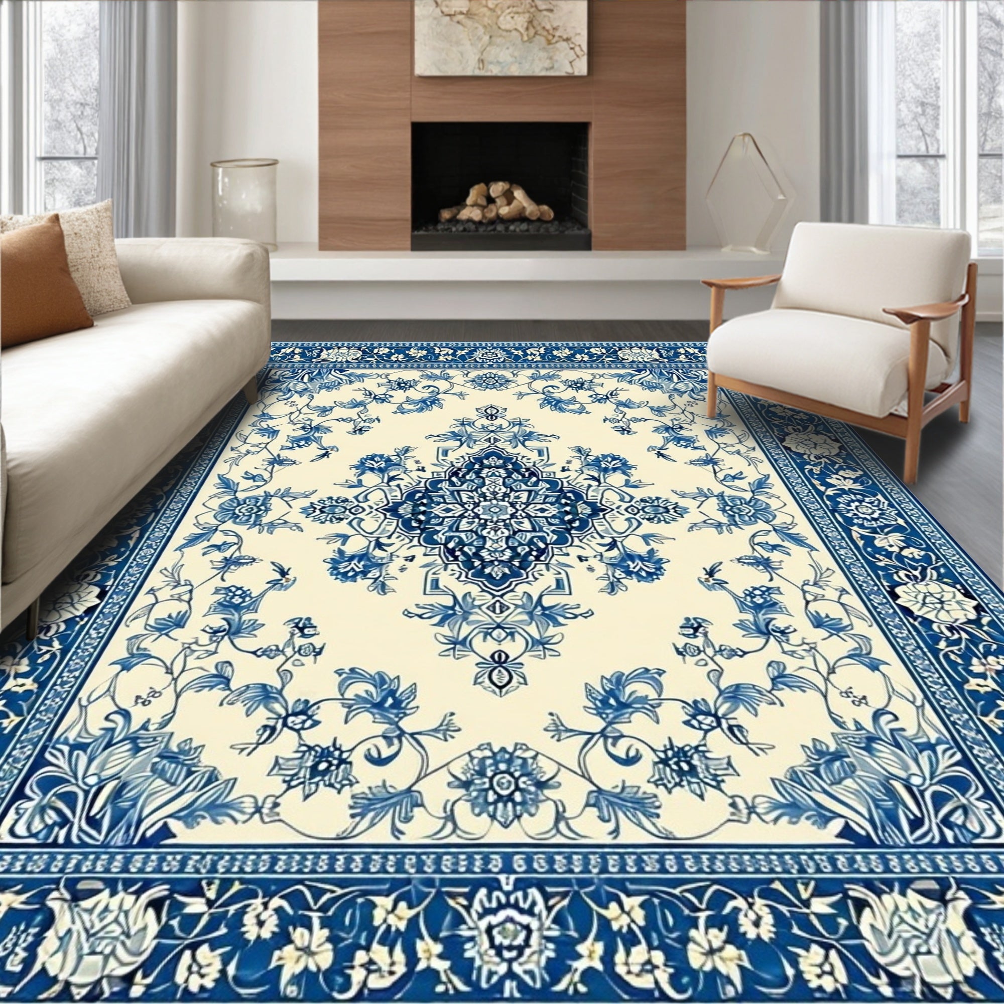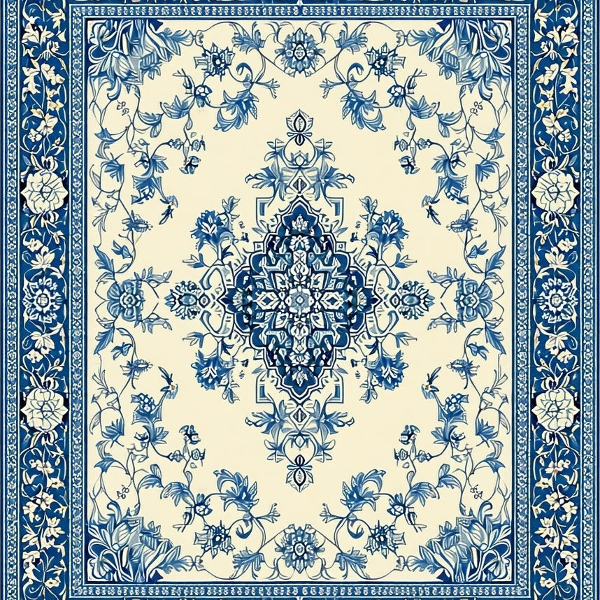 Coastal Blue Beige Medallion Area Ornate Floral Design(Blue)