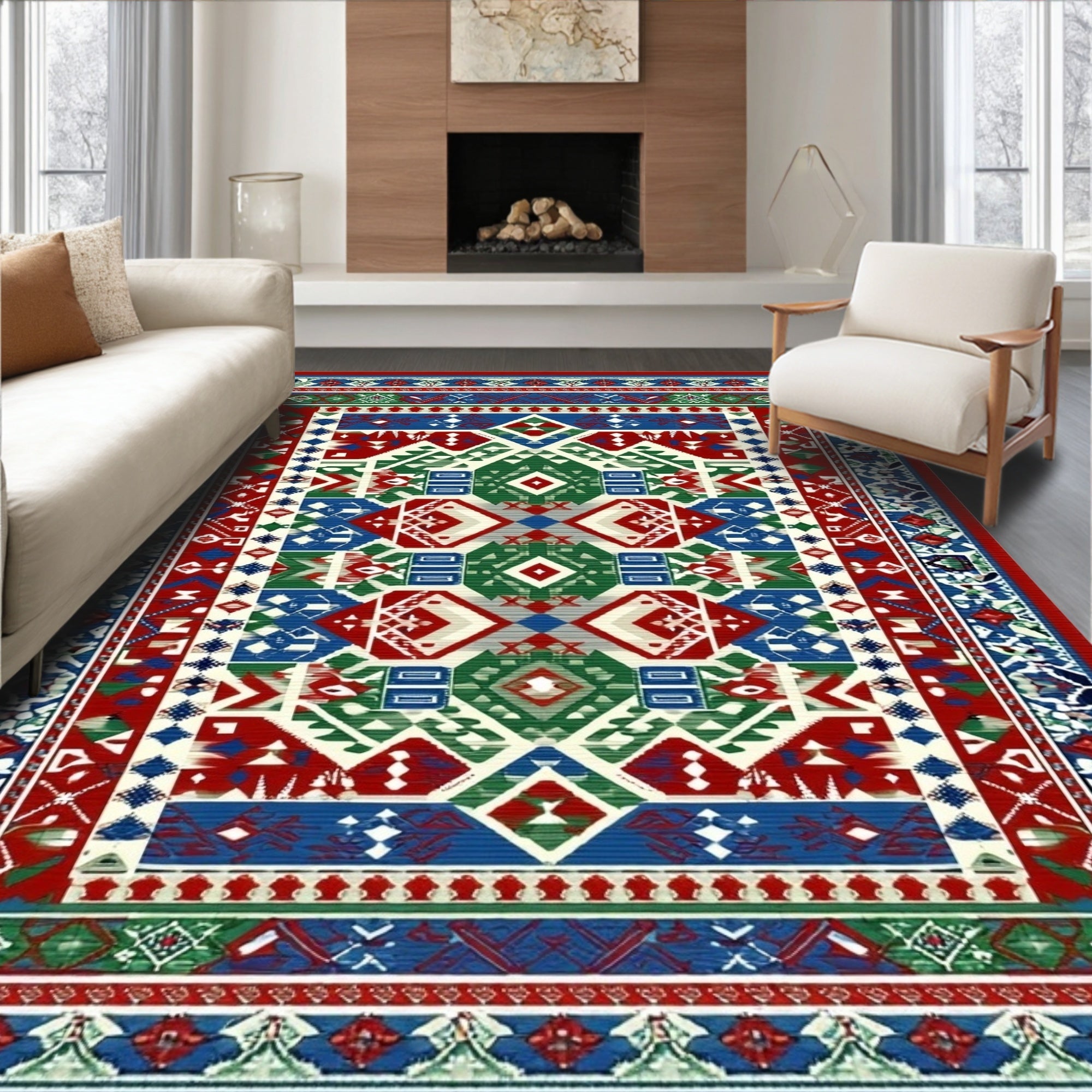 Colorful Geometric Shower Mat Flannel Non Slip(Red)