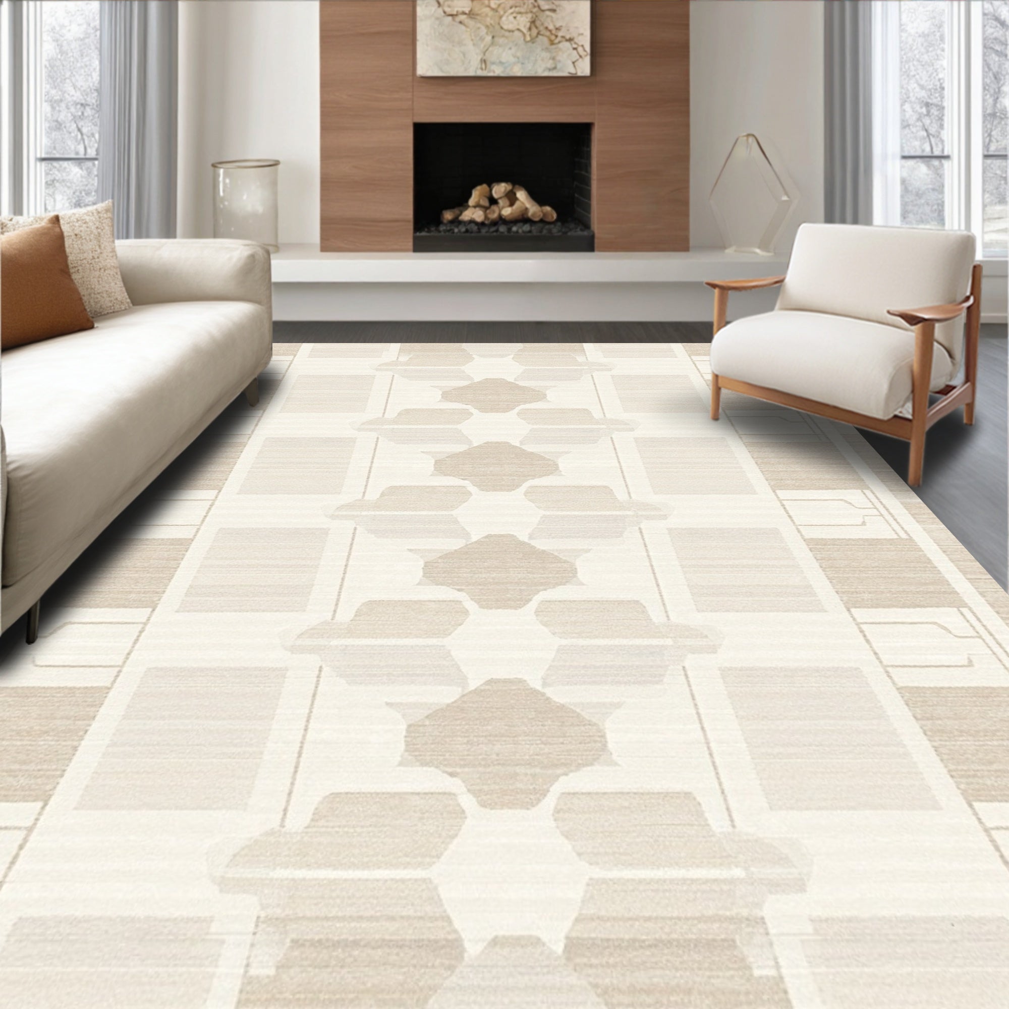 Modern Minimalist Area Neutral Beige Simple Geometric Shapes(Beige)