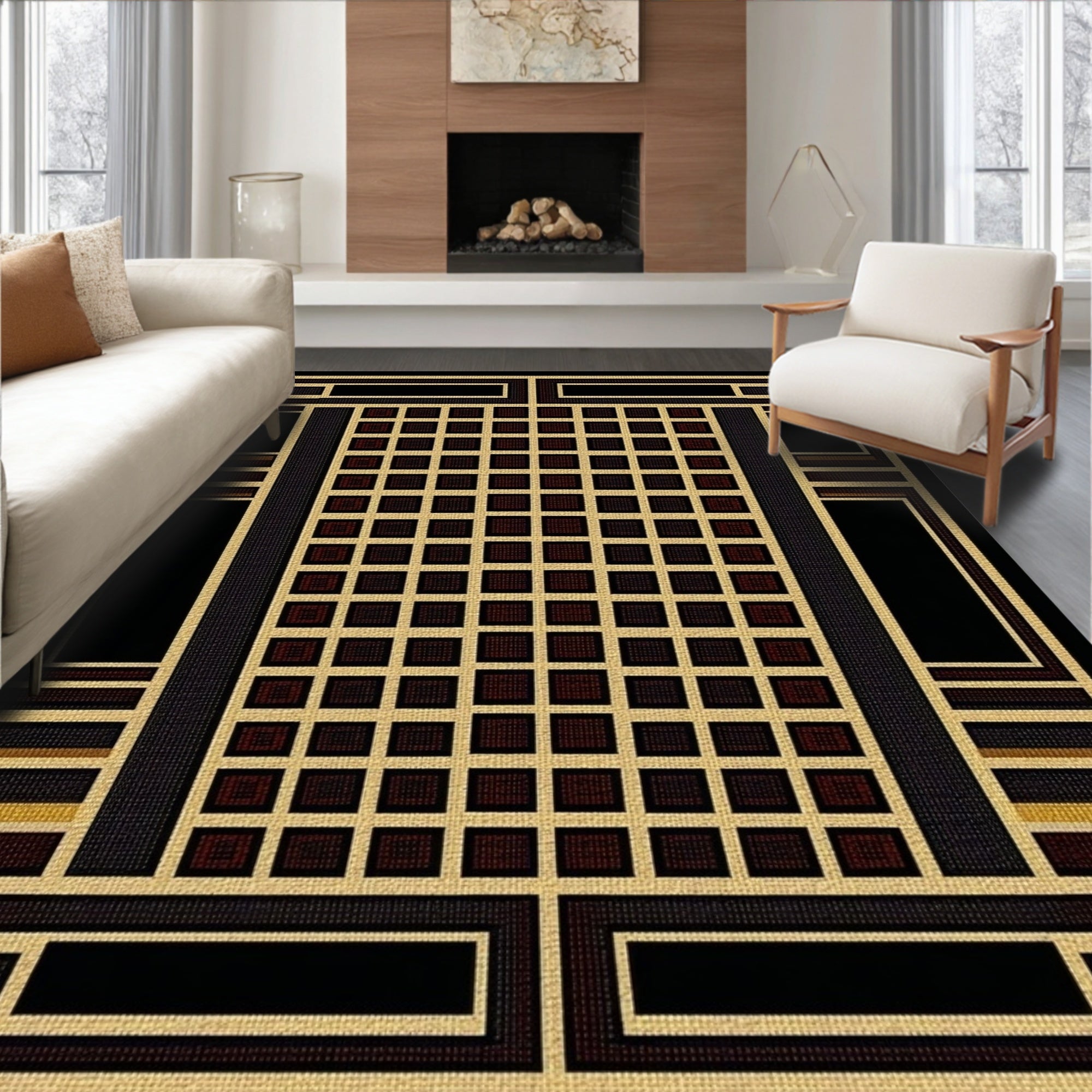 Neutral Tan & Beige Checkered Simple Geometric Area(Beige)