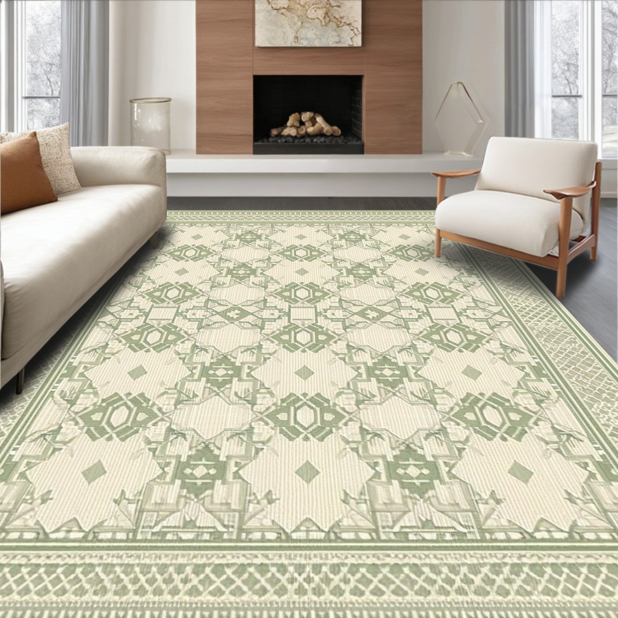 Mudroom Patio Elegant Diamond Trellis Beige Sage Green Indoor(Beige)