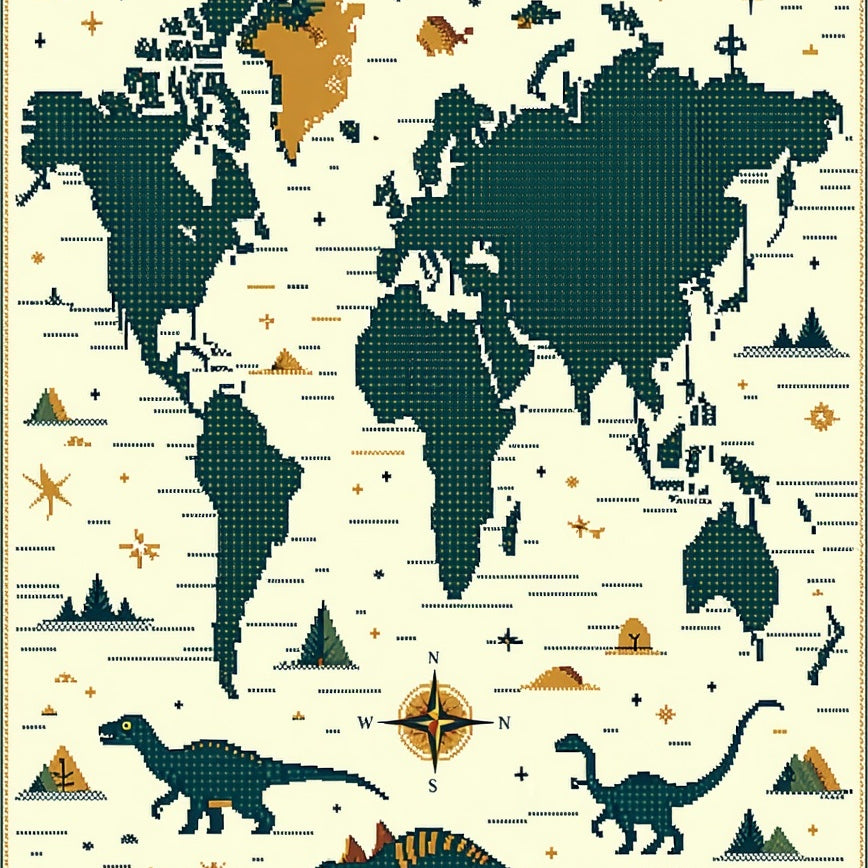 Beige Educational with Dinosaur Silhouettes and World Map(Green)
