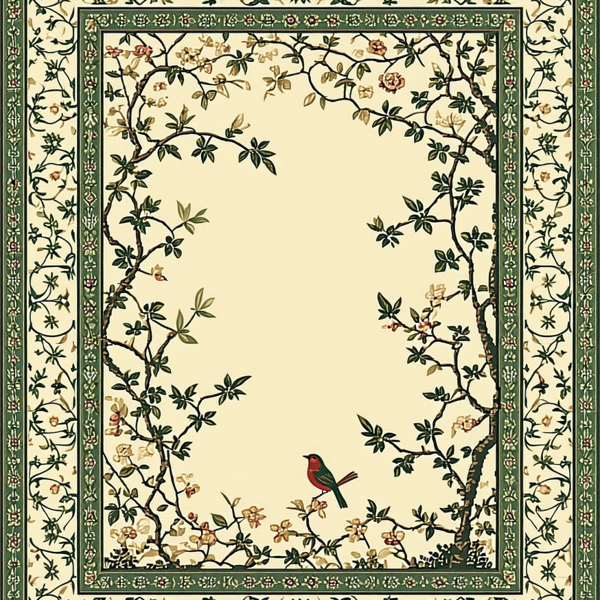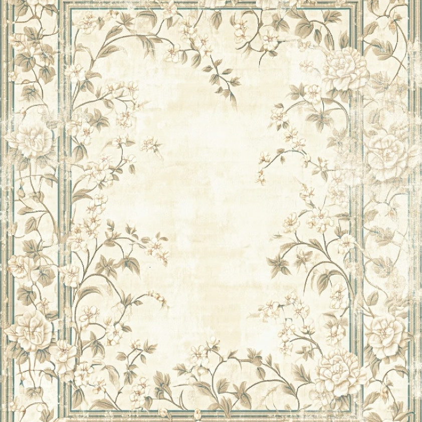 Pastoral Charm Beige & Green Ornamental Area(Beige)