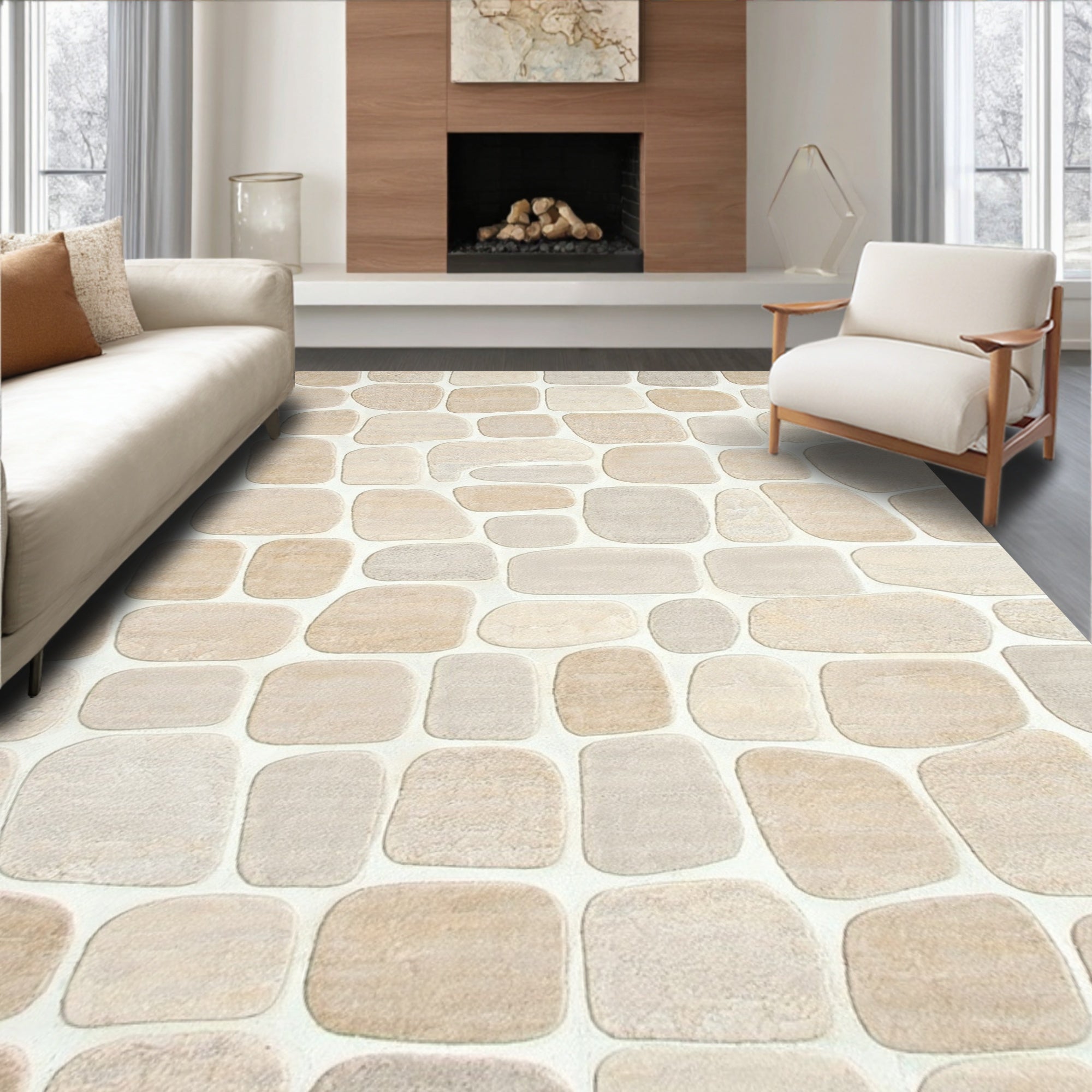 Serene Beige Accent with Pebble Shapes and Natural Textures(Beige)