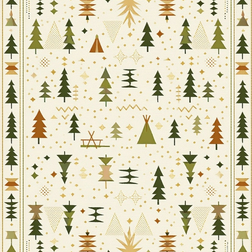 Beige Camper Expedition with Geometric Tent and Pine Tree Motifs(Beige)