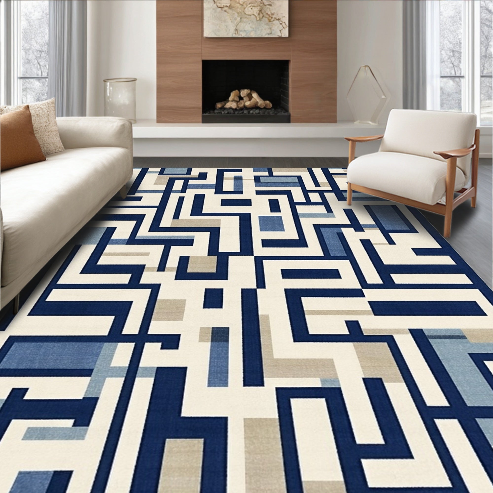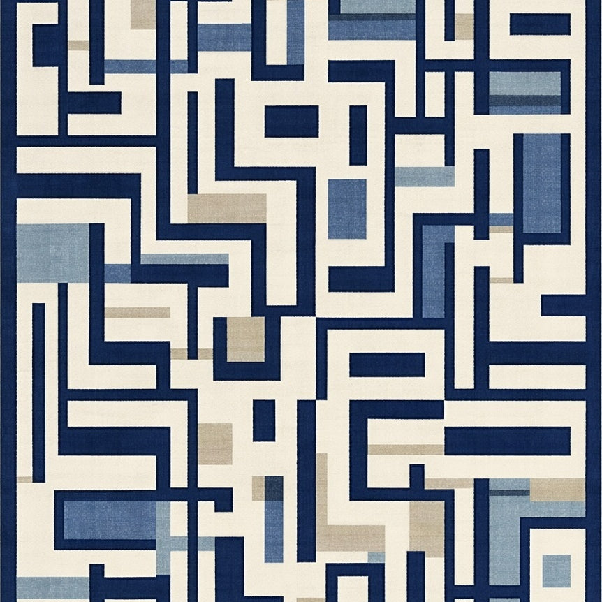 Modern Geometric Indoor/ Area Navy and Beige(Blue)