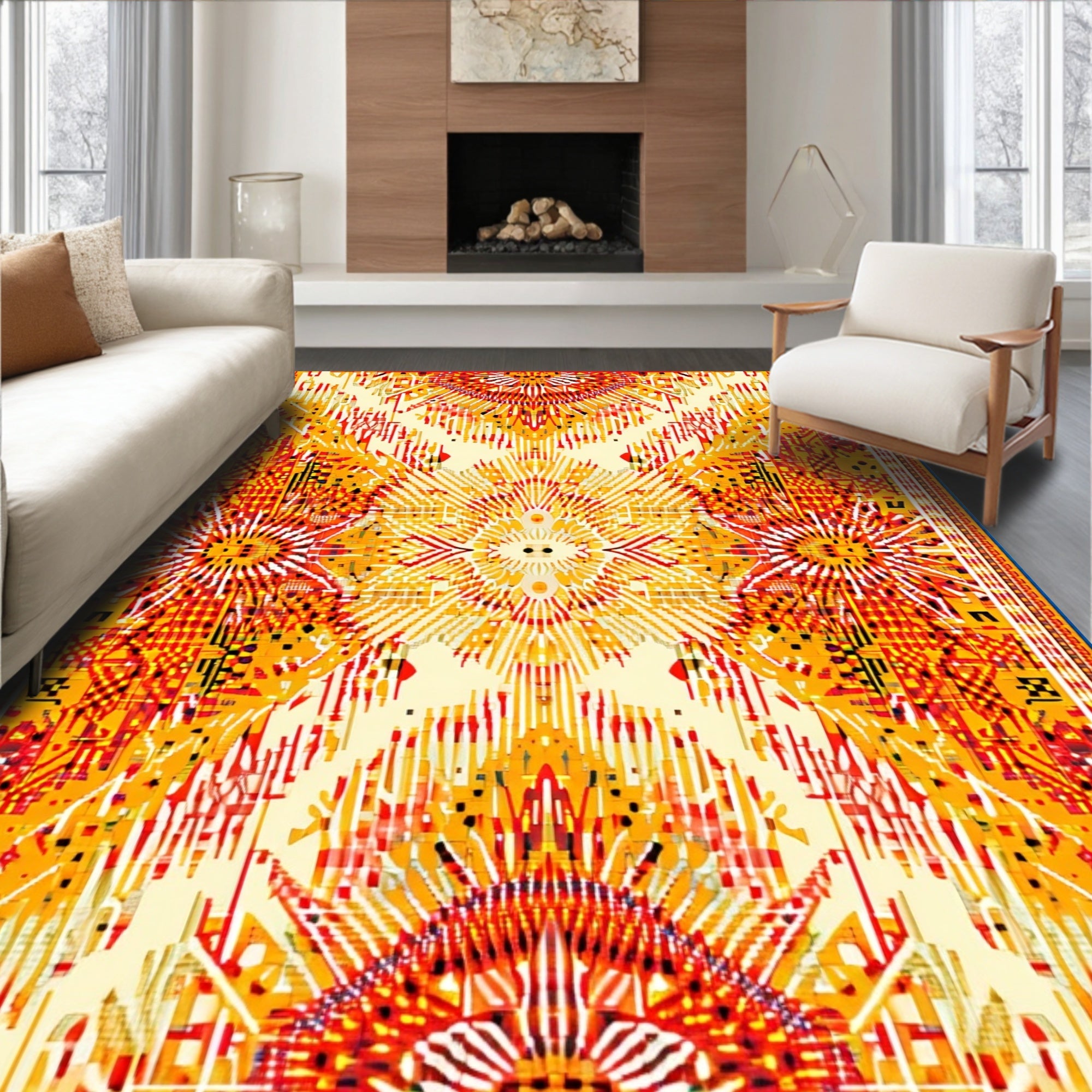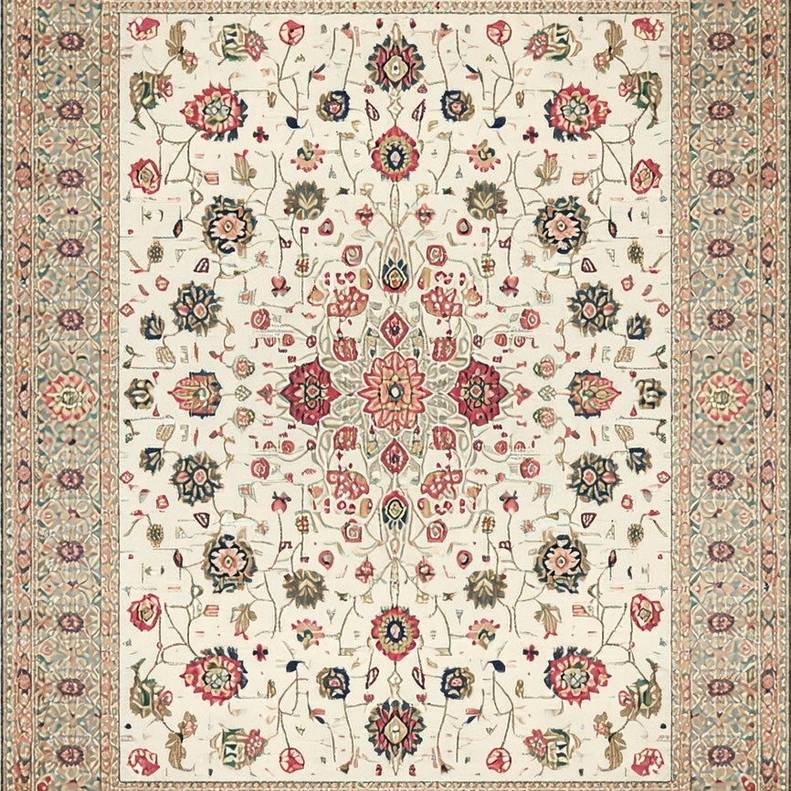 Non Slip with Beige Floral Medallion and Boho Highlights(Ivory)